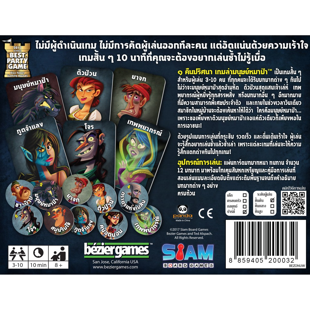 [ของแท้] หนึ่งคืนปริศนาเกมล่ามนุษย์หมาป่า (One Night Ultimate Werewolf) Board Game (Siam Board Game) บอร์ดเกม ไทย/THAI