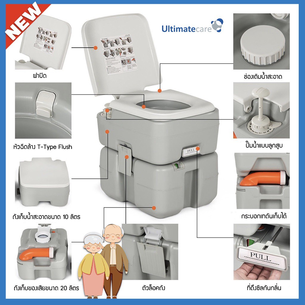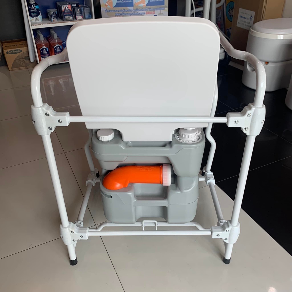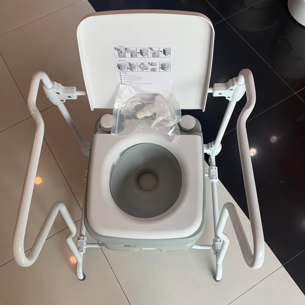 ส้วมพกพาเก็บกลิ่นในห้องนอน ห้องแอร์ ส้วมเคลื่อนที่ สำหรับผู้สูงอายุ พร้อมราวจับตรงรุ่น Ultimatecare (P.2)แถมสายฉีดชำระ