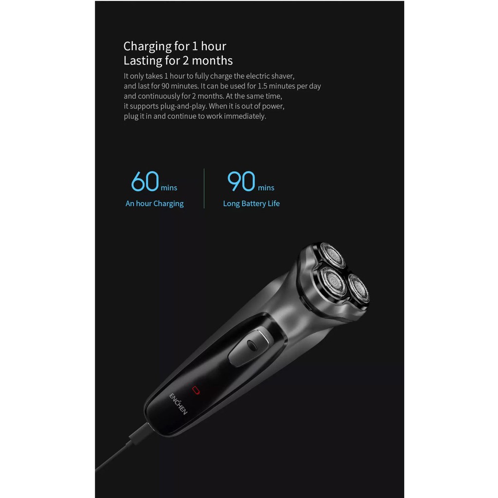 Enchen Black Stone 3D Shaver เครื่องโกนหนวดไฟฟ้า มีหัวกันจอน โกนเกลี้ยงเกลา ที่โกนหนวดไฟฟ้าของผู้ชาย