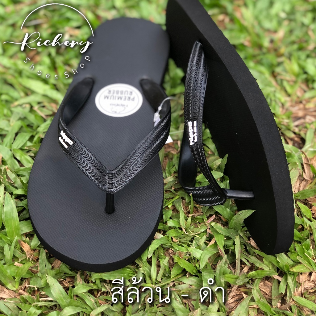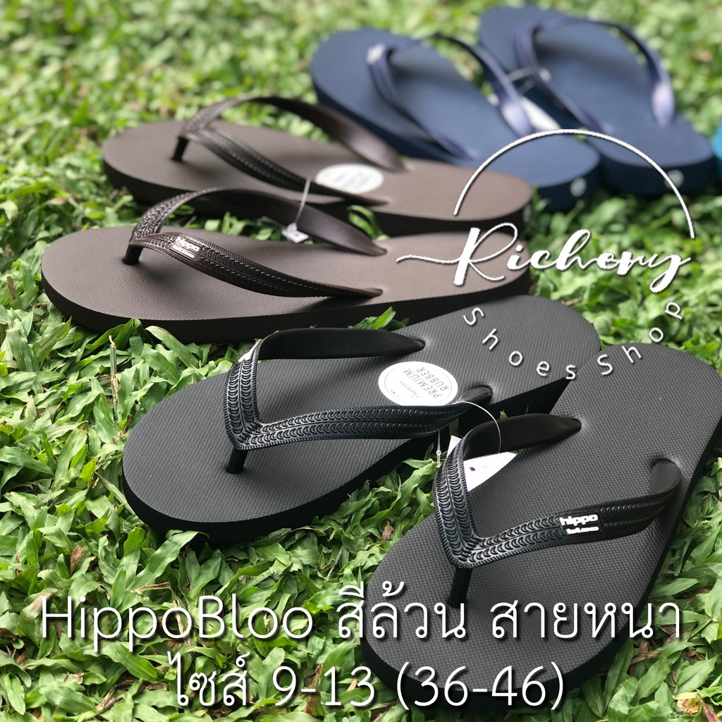 รองเท้าแตะ สายหนา สีดำ สีล้วน สีเข้ม Hippo Bloo ไซส์เล็กถึงใหญ่มาก รองเท้าอยู่บ้านหูหนีบ ฮิปโป บลู