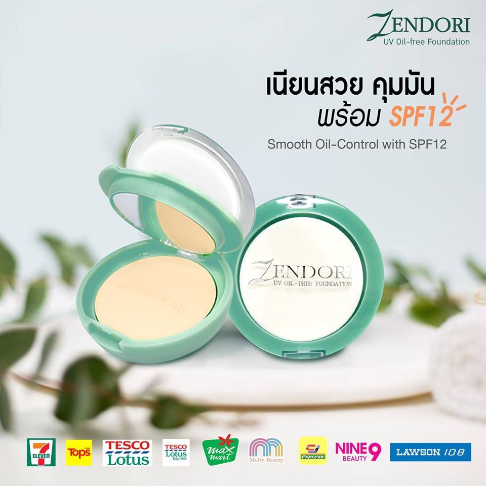 Zendori UV Oil-Free Foundation SPF12 (ตลับเขียว) แป้ง เซนโดริ ยูวี ออยฟรี