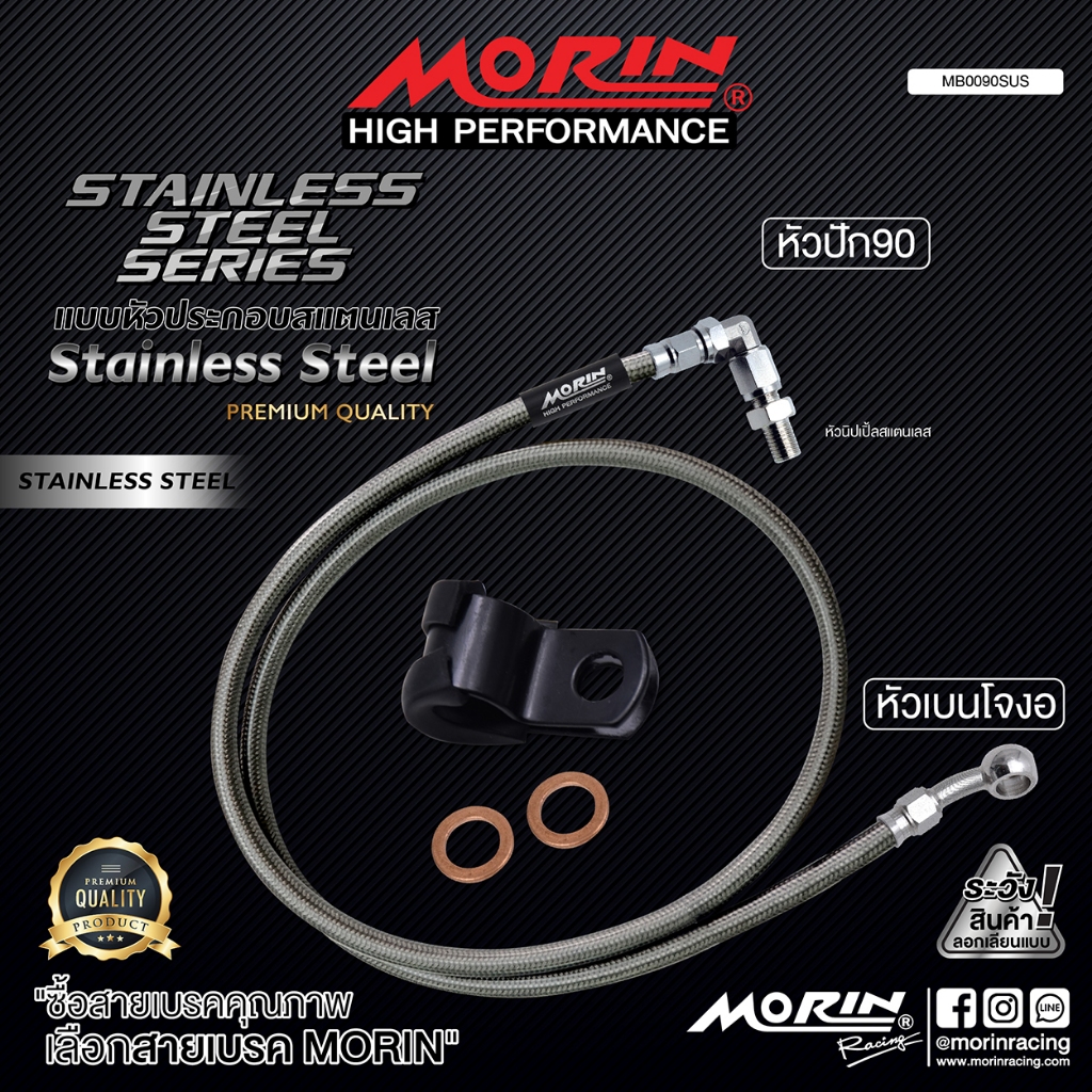 MORIN สายเบรคถัก หัวปัก 90+เบนโจงอ รุ่นหัวสแตนเลส แถมหัวนิปเปิ้ลสแตนเลส (อะไหล่แต่งมอเตอร์ไซค์)