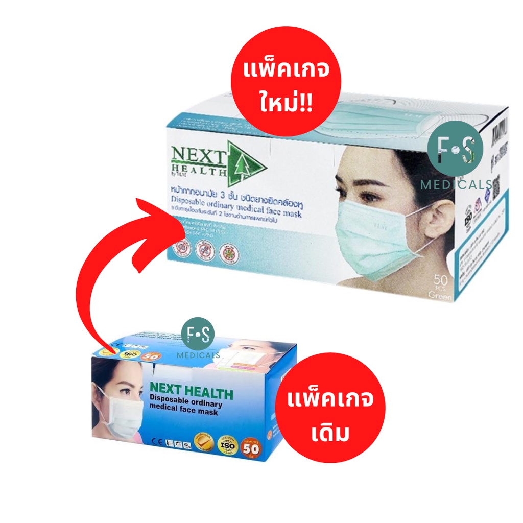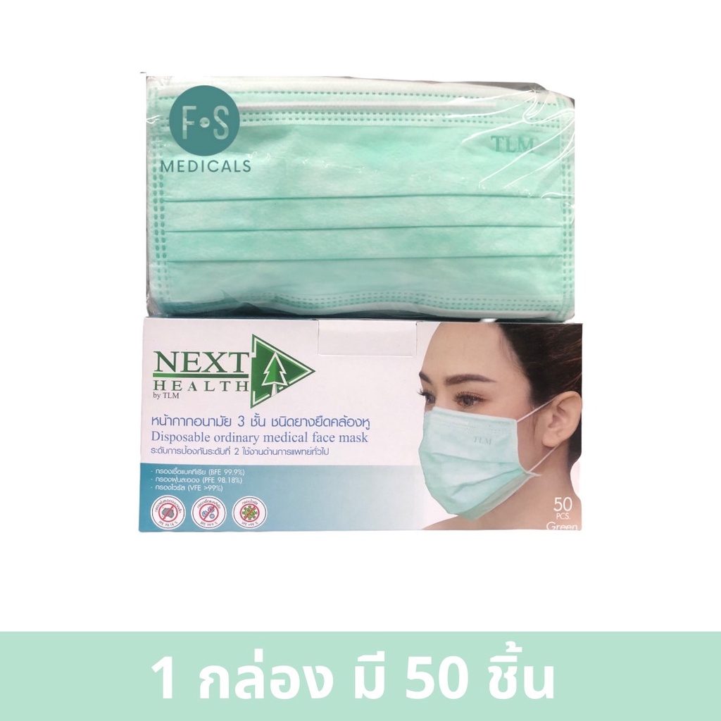 ล็อตใหม่!! Next Health Disposable Medical Mask หน้ากากอนามัย สีเขียว, ขาว, ฟ้า, ชมพู (1 กล่อง = 50 ชิ้น)