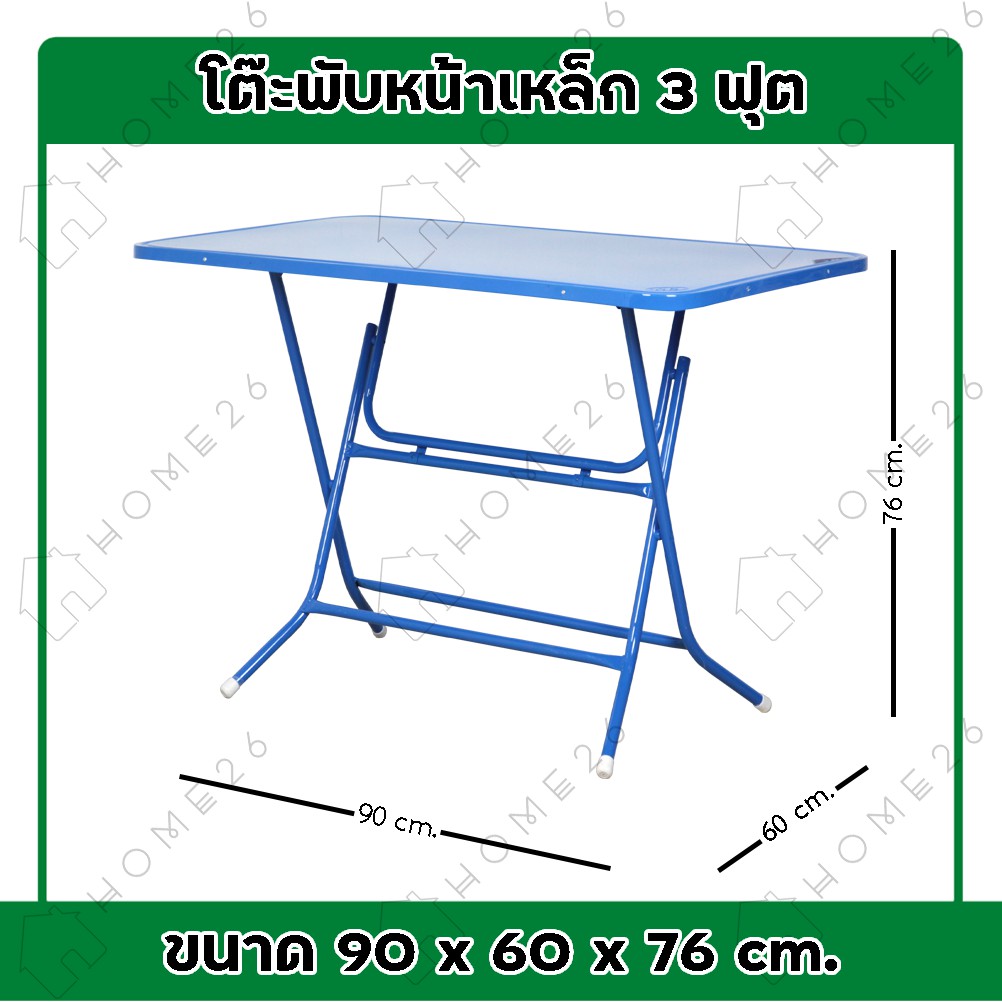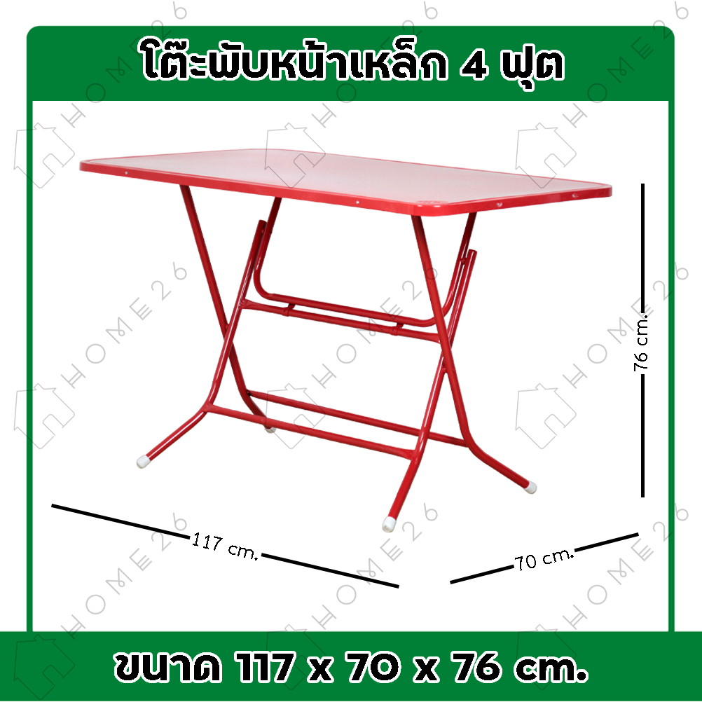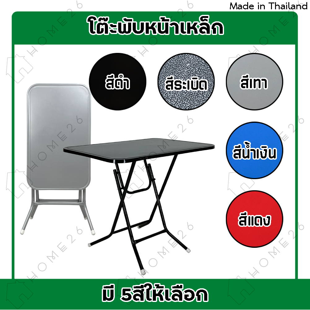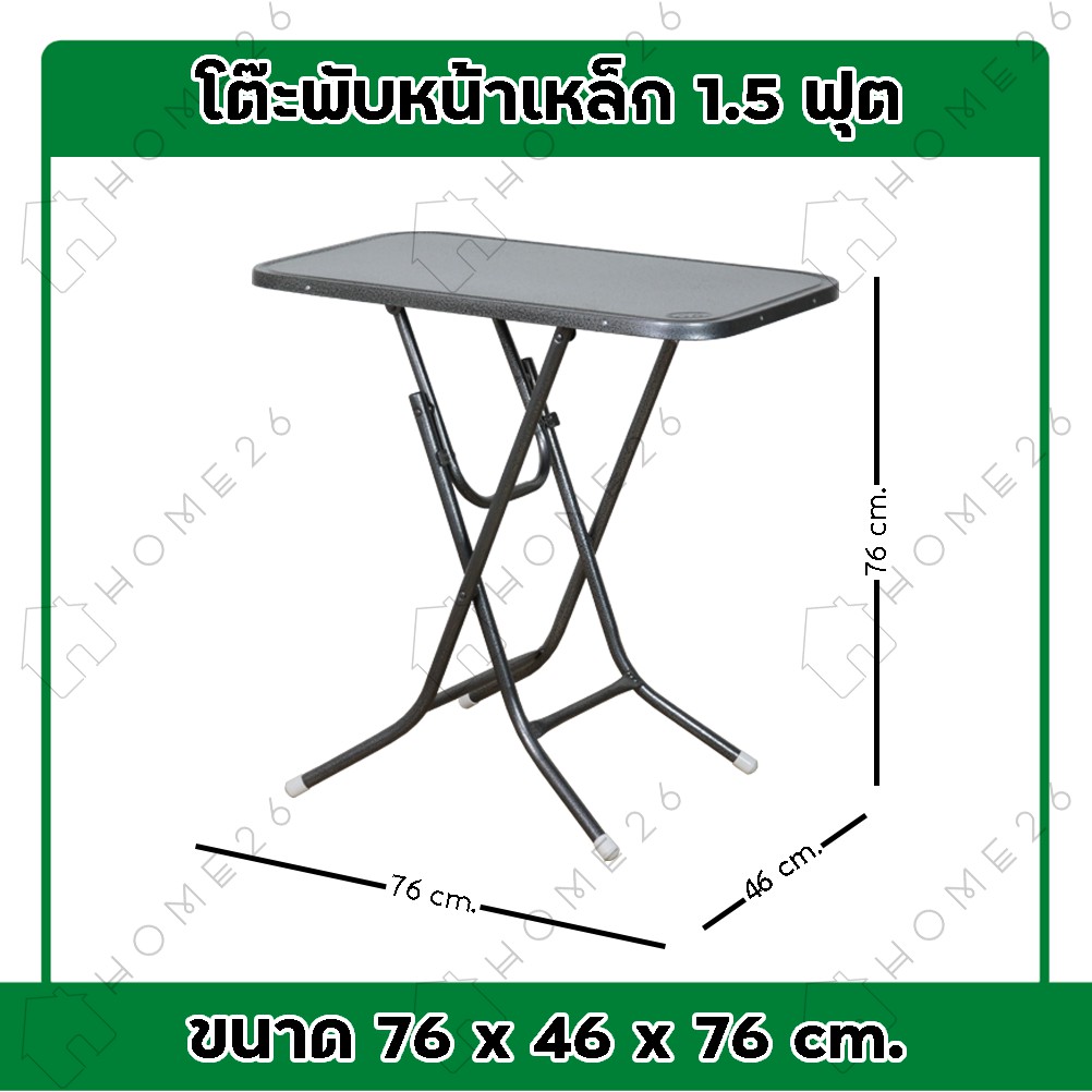 Home26 โต๊ะพับหน้าเหล็ก ขนาด 1.5ฟุต / 3ฟุต / 4ฟุต ขาเหล็กกลมไขว้ พับเก็บได้