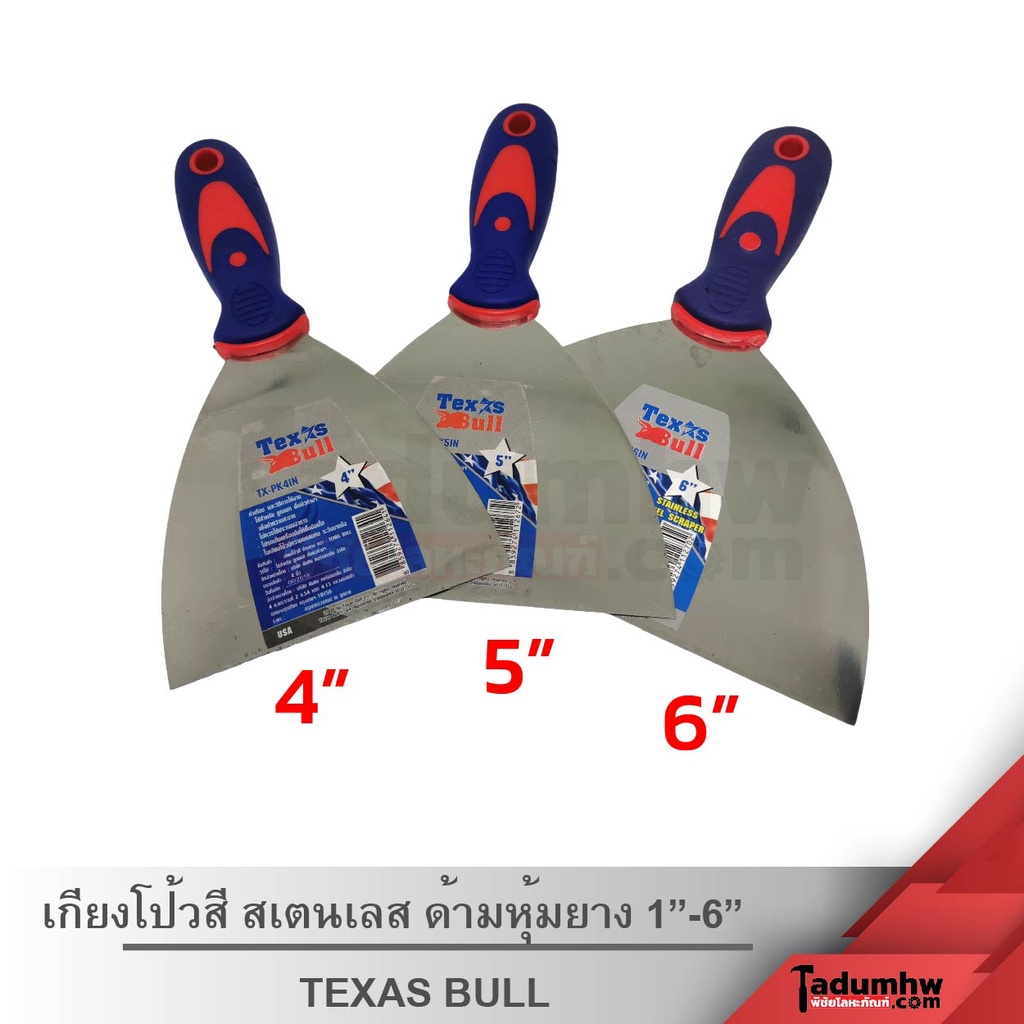 TEXAS BULL เกียงโป้วสี 1" - 6" เกรียงโป๊วสีสเตนเลส เกียงขัด ด้ามหุ้มยาง อย่างดี ยี่ห้อเท็กซัส บูลส์