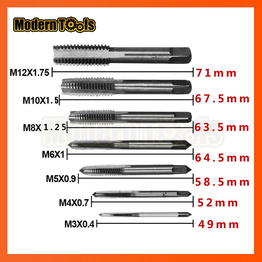 MT ดอกต๊าปเกลียว ตัวผู้ ชุด 7 ชิ้น ขนาด M3 M4 M5 M6 M8 M10 M12 สำหรับงานไม้ พลาสติก และโลหะแผ่น