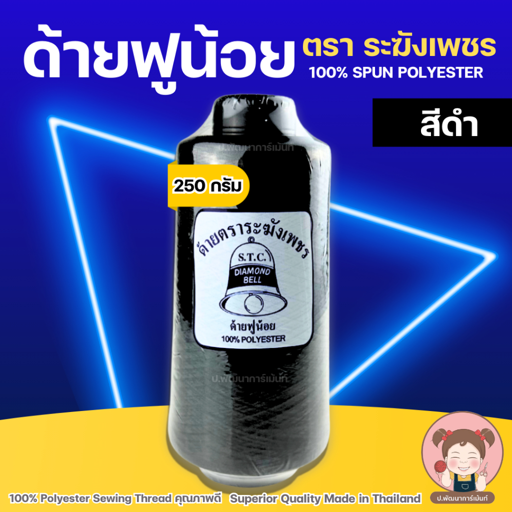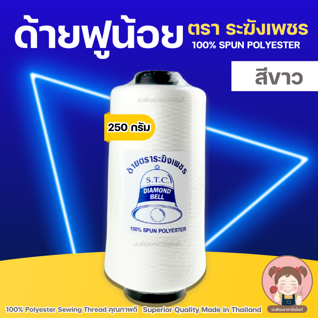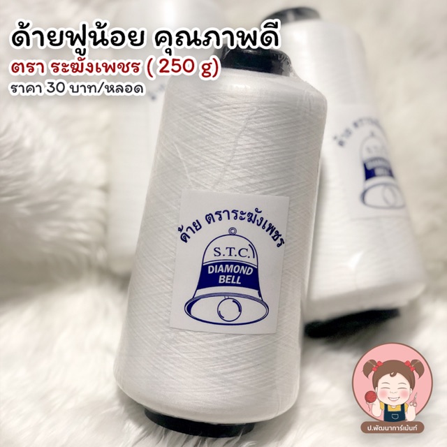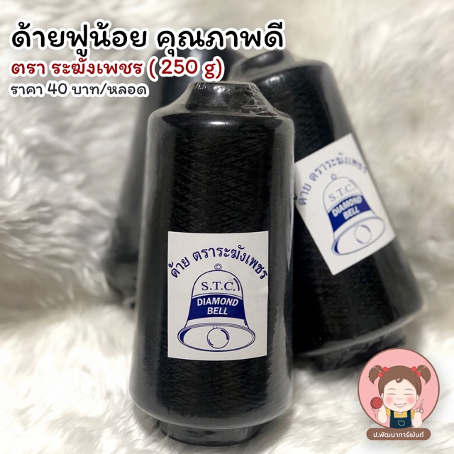 ด้ายฟู ด้ายฟูน้อย ด้ายฟูโพ้งผ้า ด้ายฟูสำหรับจักรโพ้ง ตราระฆังเพชร คุณภาพดี 250 g (ขาว/ดำ)