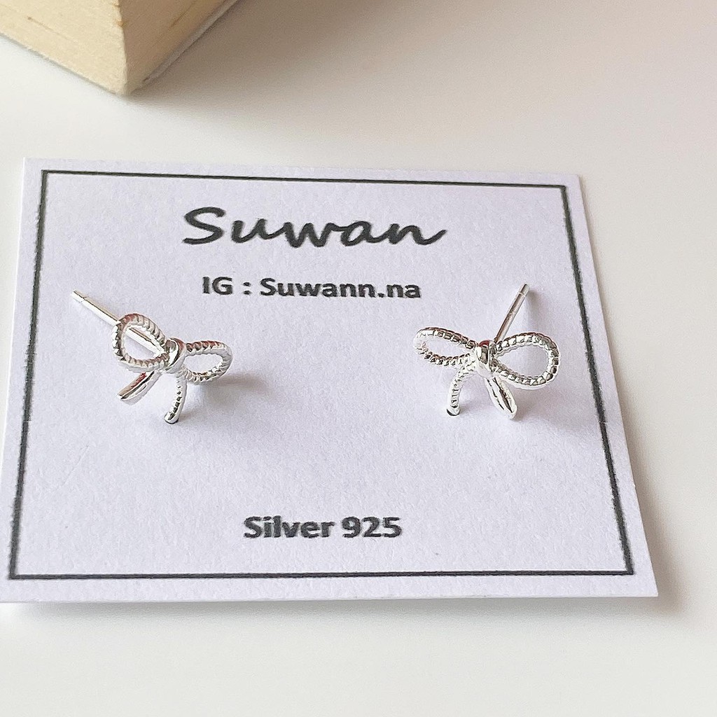 Suwann.na [ราคาต่อคู่] ต่างหู ต่างหูเงินแท้ ต่างหูโบว์
