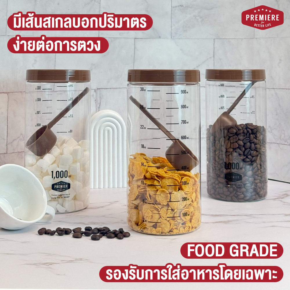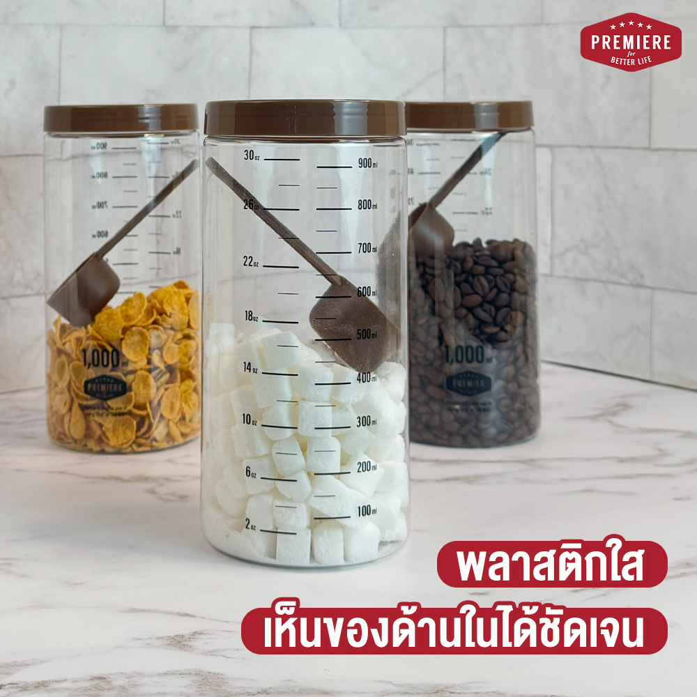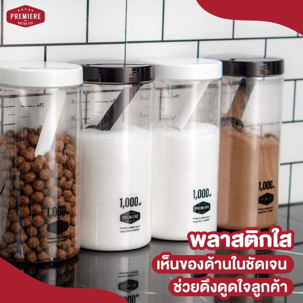 (1แพ็ค) ขวดโหลพลาสติก ความจุ 1,000 ml.มีช้อนตักให้ในโหล ใช้ใส่เครื่องปรุง ใส่ผงชา-กาแฟ ใช้งานได้หลากหลาย