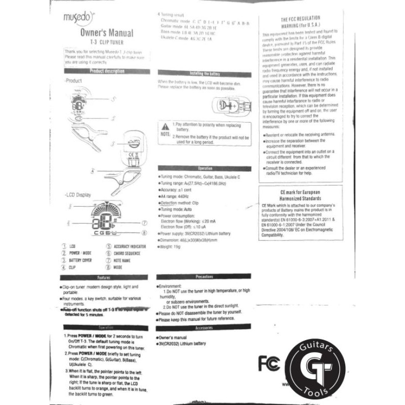 เครื่องตั้งสาย🔥คุณภาพดี ราคาถูก 🔥Musedo T-3ใช้ได้กับกีตาร์ เบส ไวโอลิน Ukulele แถมสติ๊กเกอร์ฟรี🎉มีเก็บปลายทาง