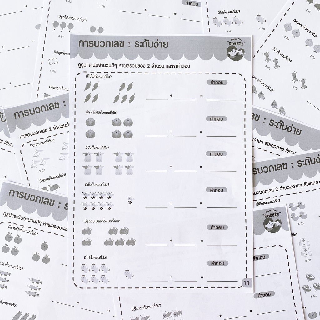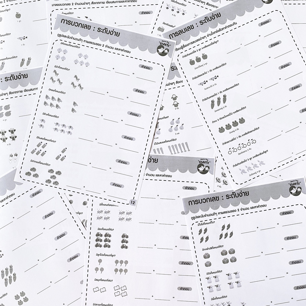 แบบฝึกหัด [[ บวก-ลบเลข ]] ชีท ไม่เข้าเล่ม เกม กิจกรรม สำหรับเด็ก (mama say sheets) Mebestbook