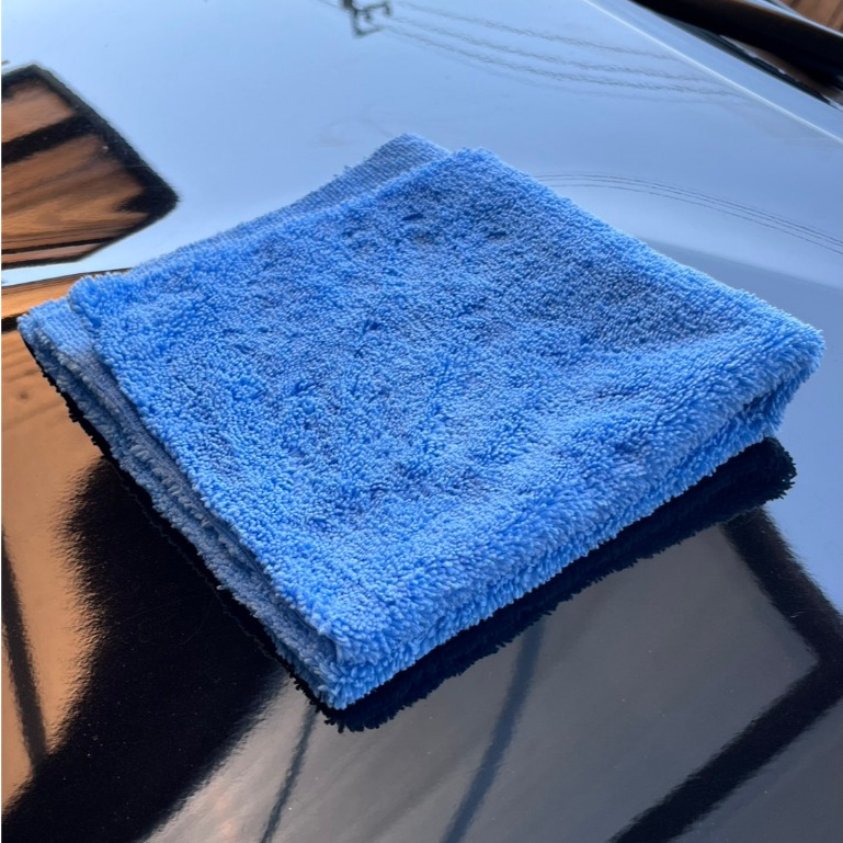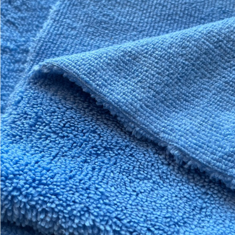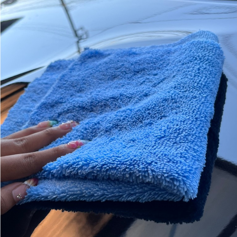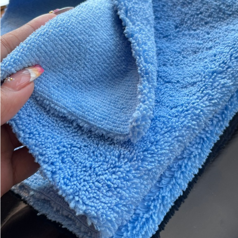 ผ้าเช็ดรถ ผ้าเช็ดเคลือบสี ผ้าไมโครไฟเบอร์ สีฟ้าแบบไร้ขอบ ขนสั้นข้างยาวข้าง ขนาด 40*40 ซม. 350 GSM