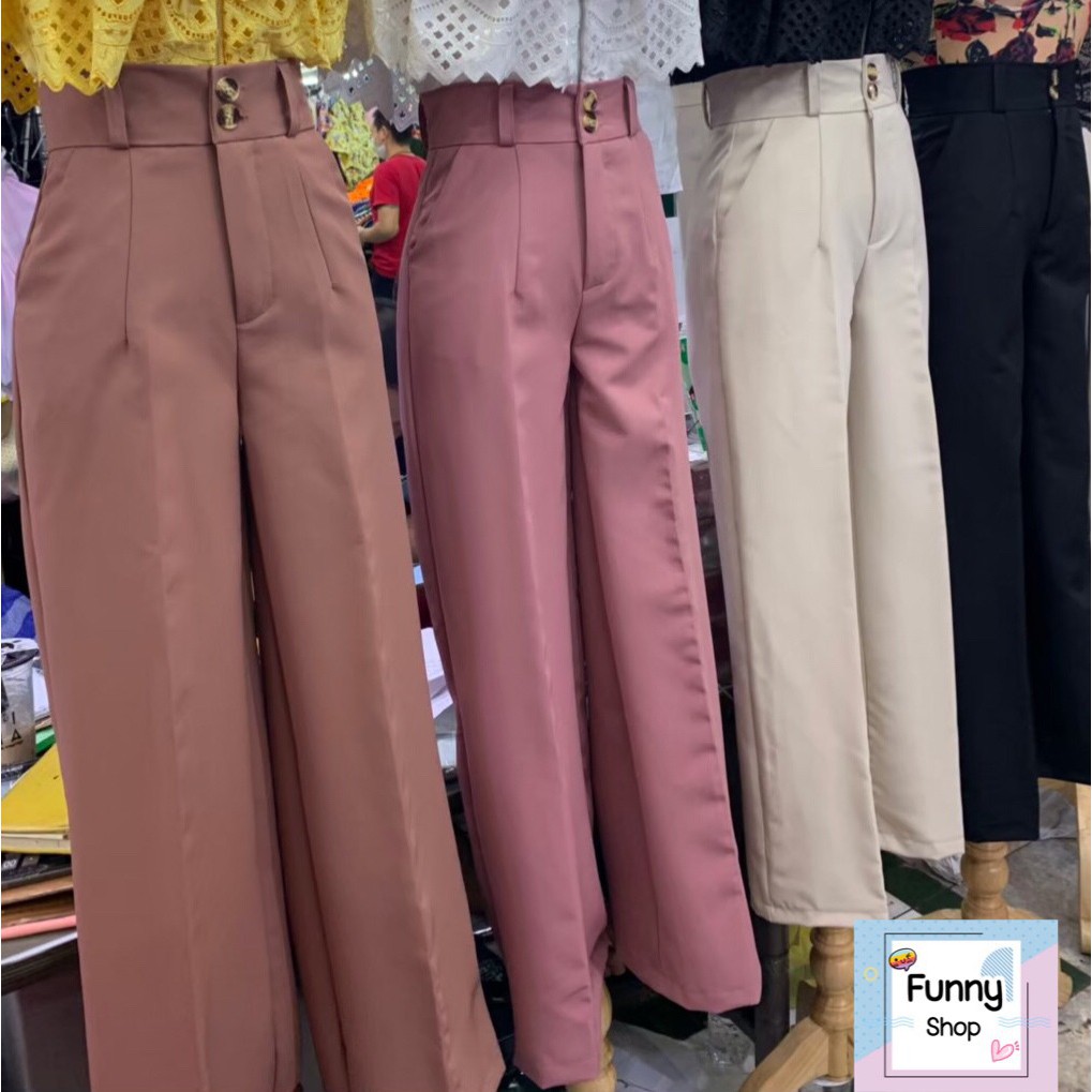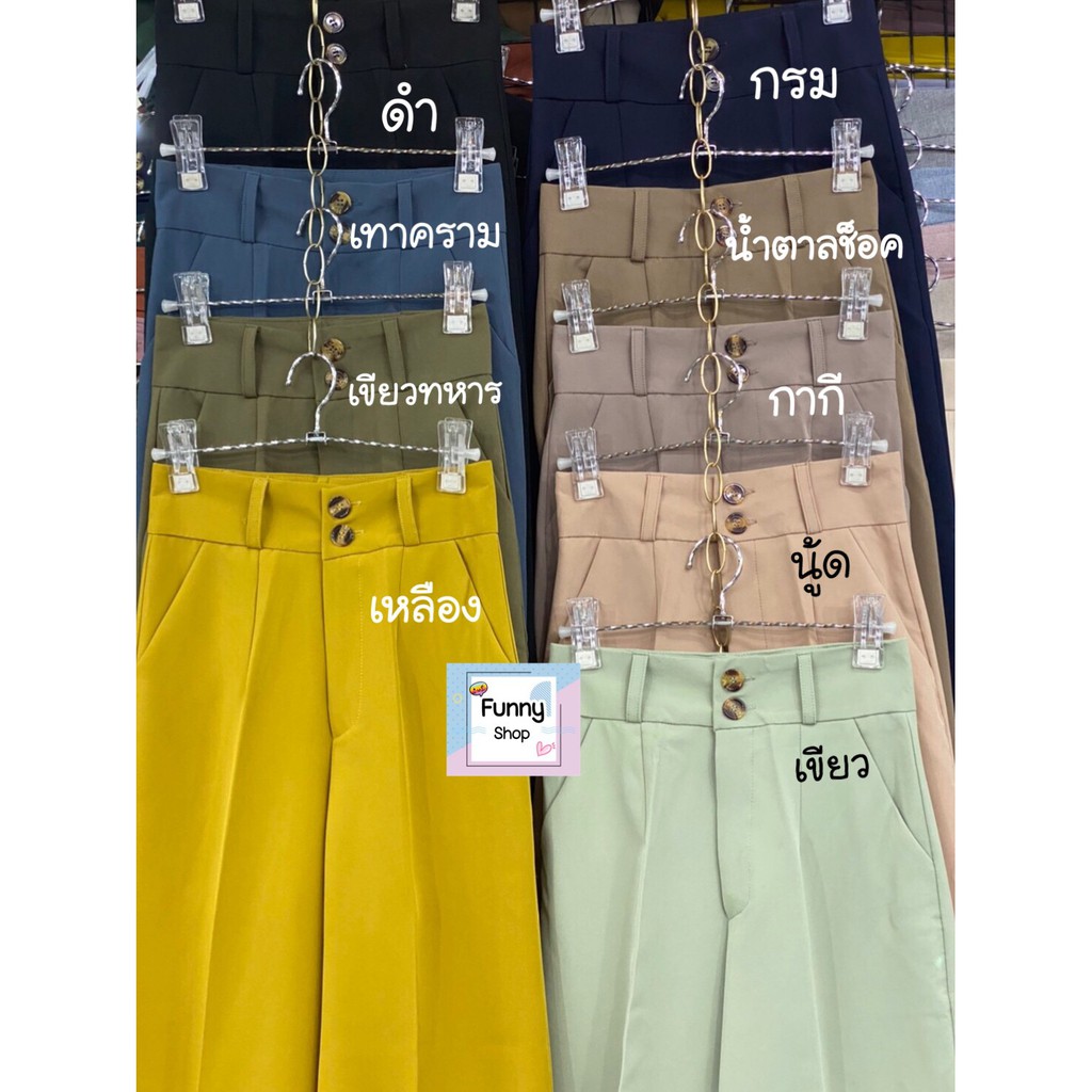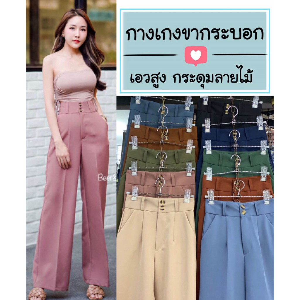 พร้อมส่ง🌸กางเกงขากระบอกเอวสูง กระดุมคู่ลายไม้สองเม็ด ผ้าไอด้าเนื้อผ้าอย่างดีทรงสวยใส่แล้วแลดูขายาว งานคุณภาพงานป้าย