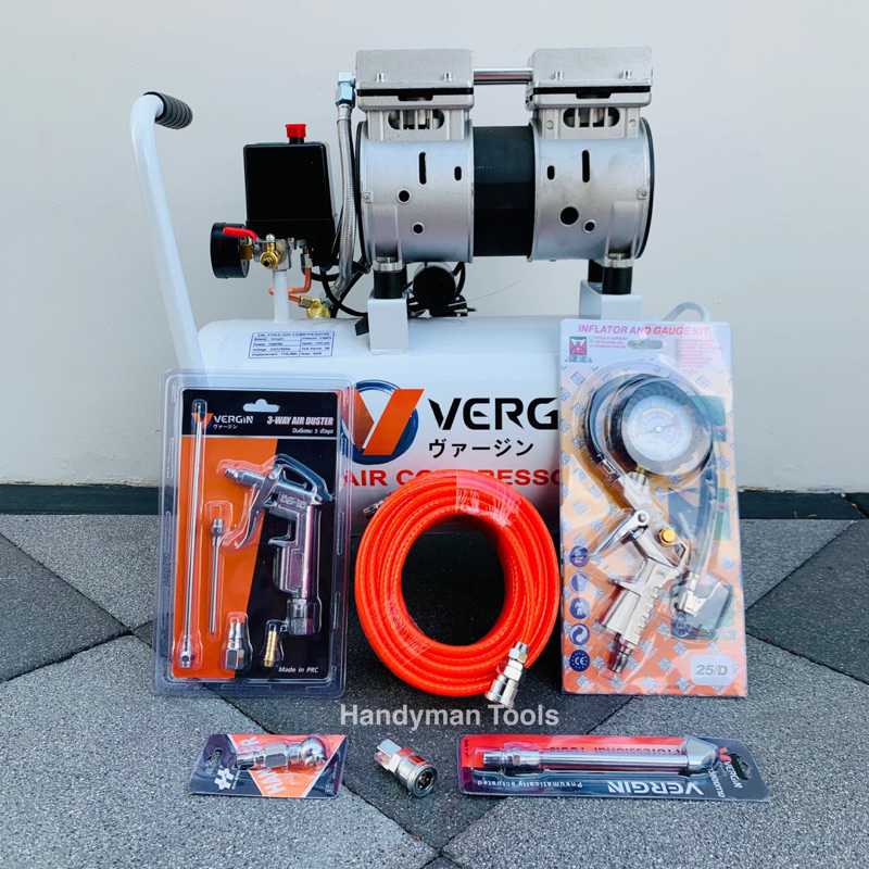VERGIN ปั๊มลม ถังลม ปั๊มลมออยฟรี ขนาด 30 ลิตร+ อุปกรณ์ 6 อย่าง + ปลั๊กพ่วงโรงงานอย่างดี 10 เมตร (สินค้ามีตัวเลือก)