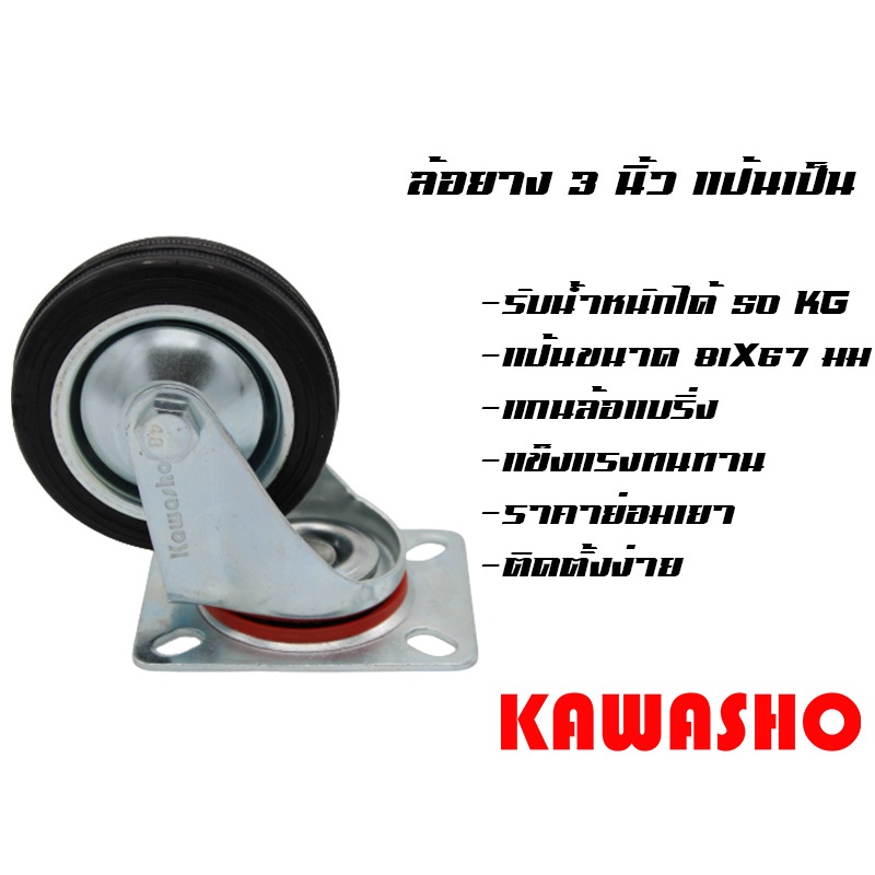 ล้อยาง 3-5 นิ้ว รุ่น80K แป้น ตาย / เป็น / เบรค ล้อรถเข็น (Rubber Caster)