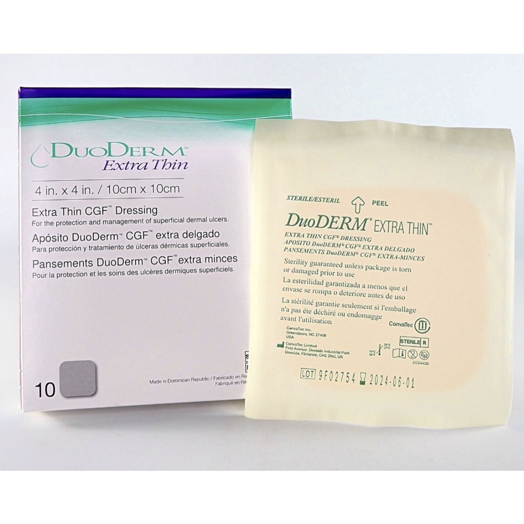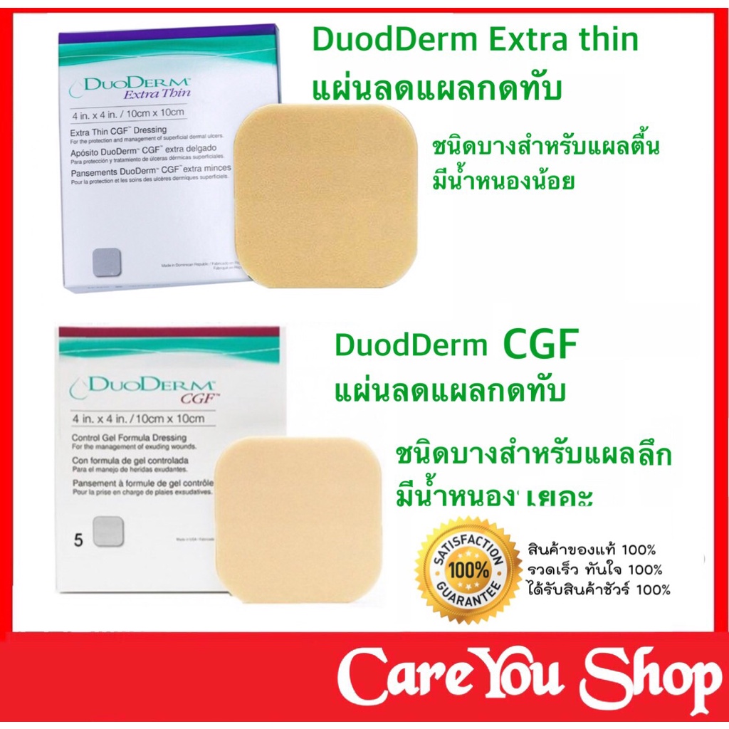 ((ยกกล่อง 5 ชิ้น)) DuoDerm CGF ขนาด 10x10 ซม. Duodrem แผ่นแปะแผลกดทับ มี 2 แบบ แบบหนา และแบบบาง ฟรีของแถม
