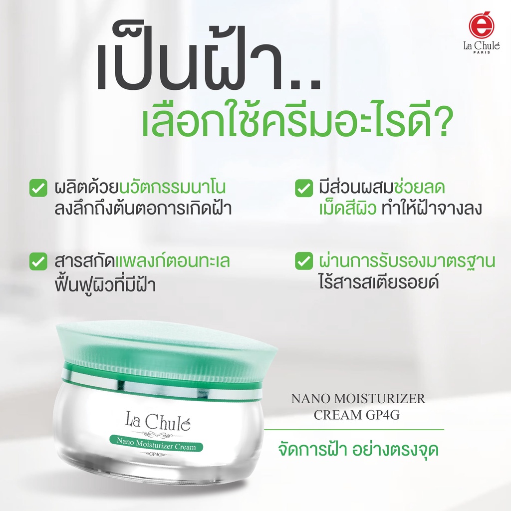 ครีมลาชูเล่ ครีมแก้ฝ้าลาชูเล่ ครีมฝาเขียว รักษาฝ้ากระ จุดด่างดำ Lachule Nano Moisturizer GP4G Cream