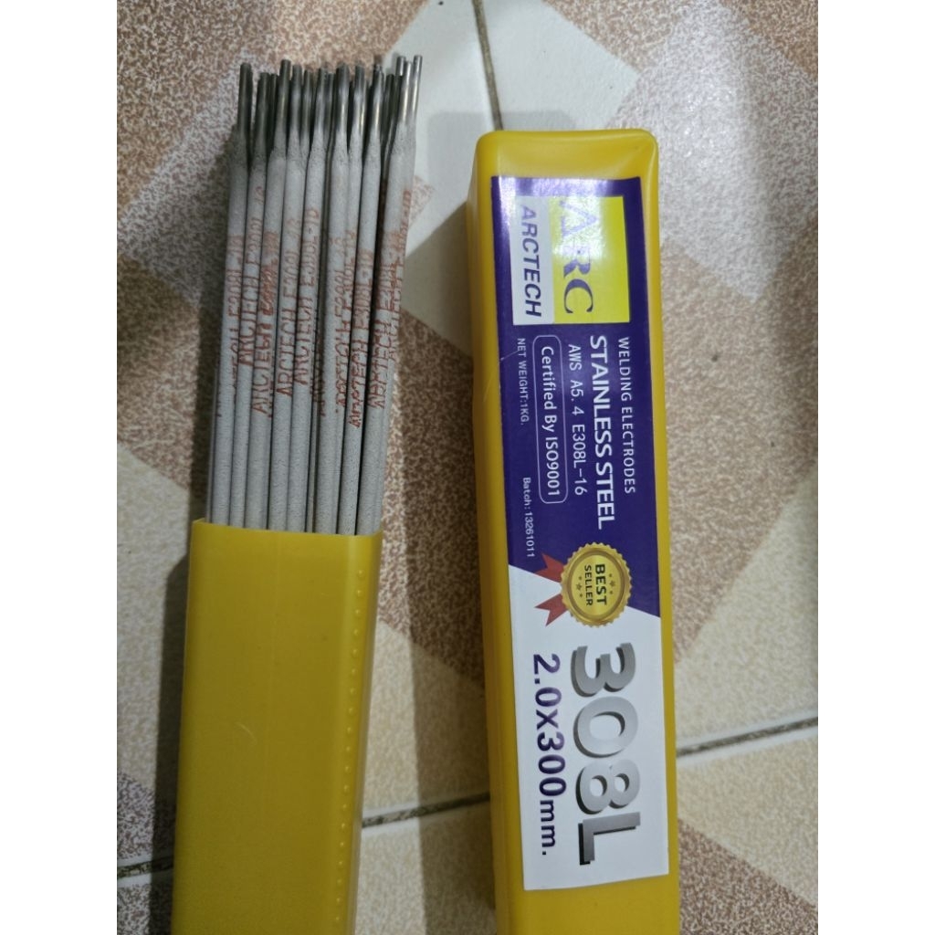 ลวดเชื่อมไฟฟ้าสแตนเลส Arctech 308L-16 ขนาด2.0mm.2.6mm.x300mm และ3.2mm.x350mm.บรรจุ แพค 1kg.