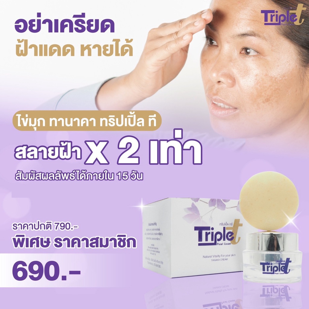 [ร้านนี้ของแท้ส่งฟรี] ครีมลดฝ้า แก้ฝ้า ครีมทริปเปิ้ลทรี (ครีม Triple T Cream) สิว ฝ้า ริ้วรอย จุดด่างดำ ครีมไข่มุกทานาคา