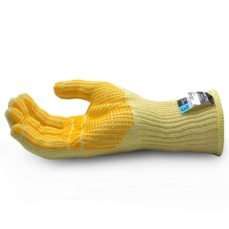 MICROTEX CUT- HEAT DOTTED PVC YELLOW(1 คู่)ถุงมือเคฟล่าร์กันบาด-กันร้อน ดอทพีวีซี สีเหลือง