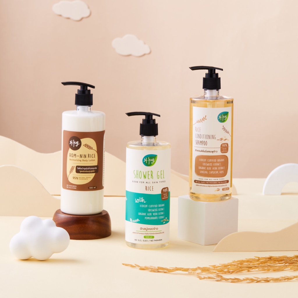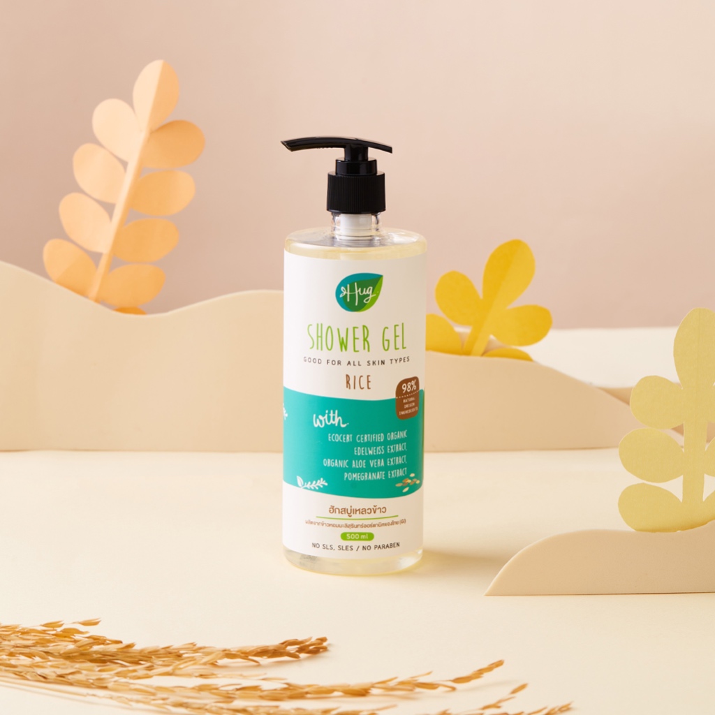 Hug เจลอาบน้ำ ข้าว สูตรอ่อนโยน สบู่เหลวส่วนผสมจากธรรมชาติ 98% [Shower Gel Rice with 98% Natural Ingredients] - 500 ML