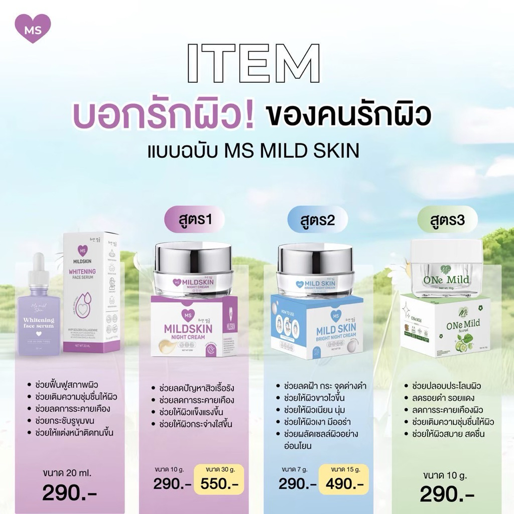 ส่งฟรี มีของแถม⚠️ ครีม MS mildskin ( ตท. เจ้าของแบรนด์ ) หน้าใส ลดสิว ผิวสุขภาพดี