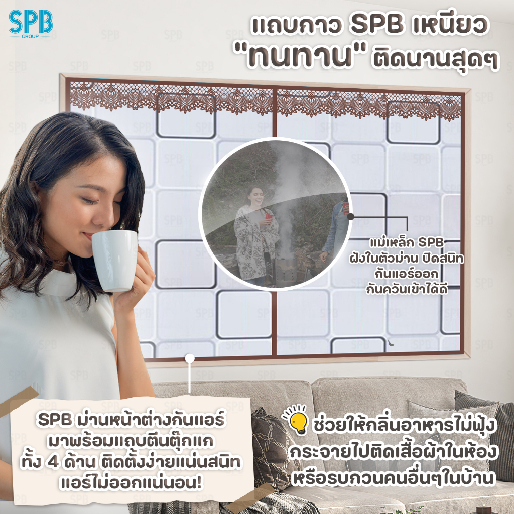 SPB ม่านหน้าต่างกันแอร์ (หลายขนาด) ลายสี่เหลี่ยม แอร์ไม่รั่ว EVA ปลอดภัย กันกลิ่น ควัน ฟรี ตีนตุ๊กแก