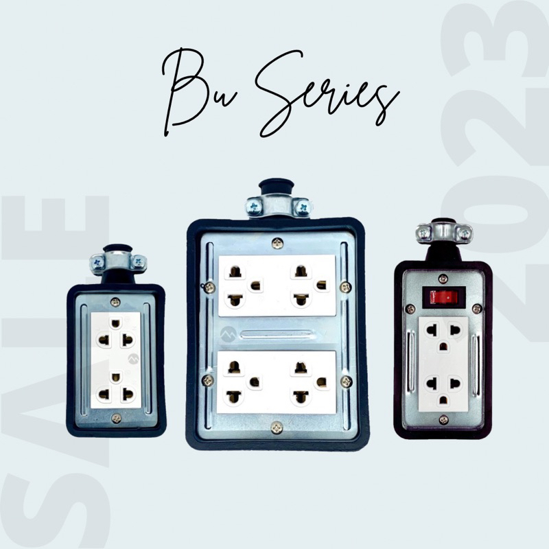บล็อกยาง +เต้ารับกราวด์คู่ 2 ช่อง/ 4 ช่อง รุ่นใหม่ มีม่าน หน้าเหล็กแท้ แข็งแรง