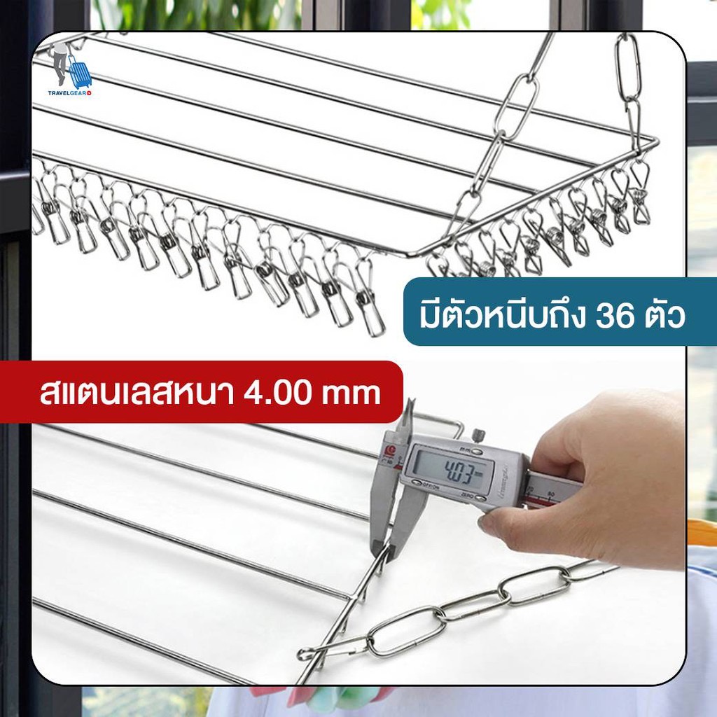 TravelGear24 ไม้แขวนผ้าสแตนเลส ราวตากผ้าสแตนเลส Drying Rack - C0031