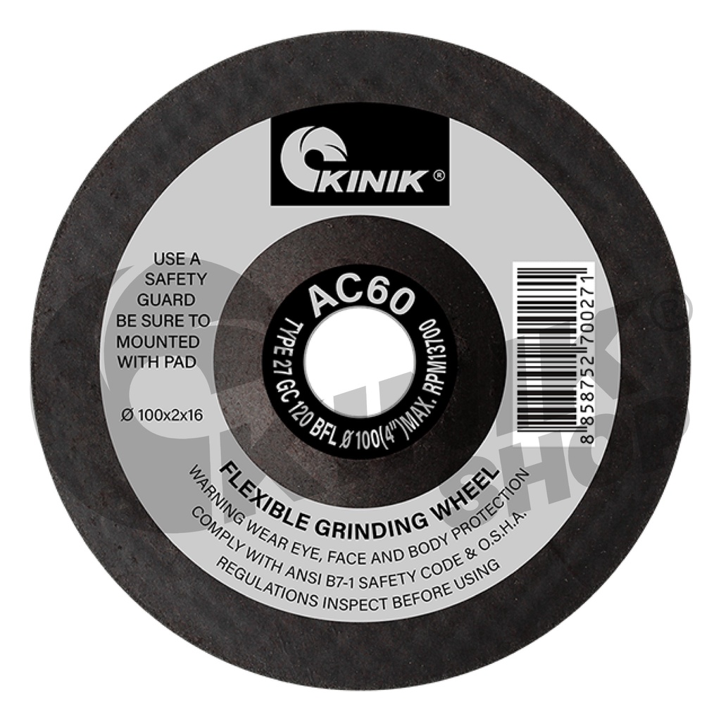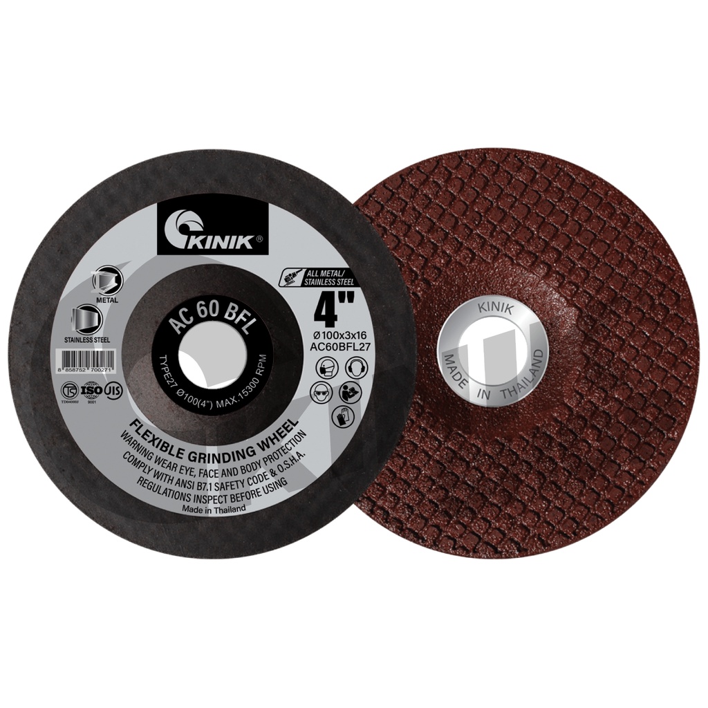 [1กล่อง25ใบ] ใบเจียรเหล็กบางKINIK ขนาด4นิ้ว หนา2มิล แผ่นไฟเบอร์ เจียรบาง(อ่อนตัว) AC60RBFL27 (100x2x16)