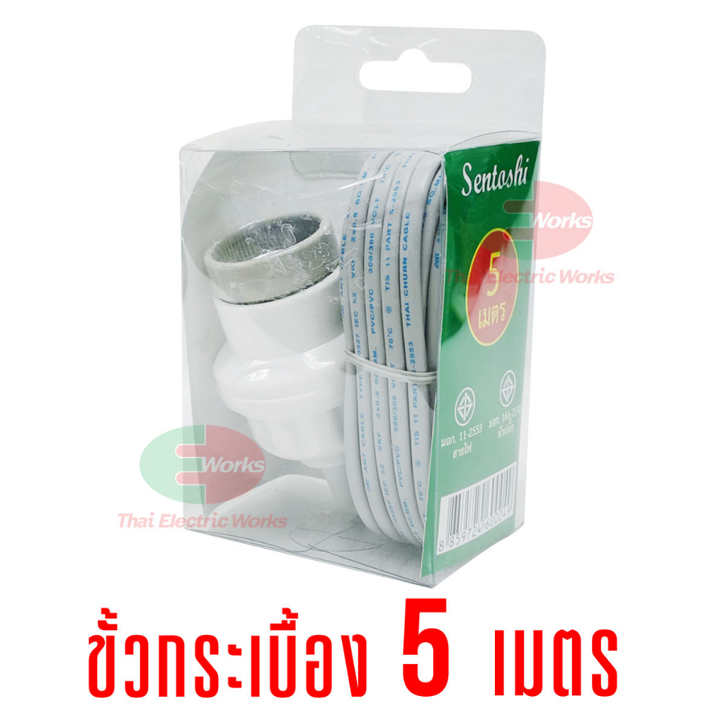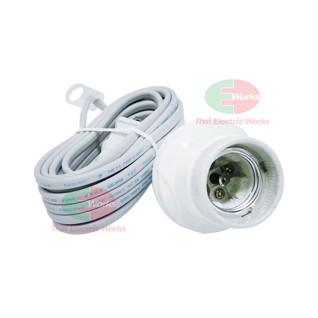 Sentoshi สายไฟต่อหลอดไฟ ขั้วเซรามิค E27 สีขาว 5เมตร ขั้วห้อย ขั้วไฟ ขั้วกระเบื้อง