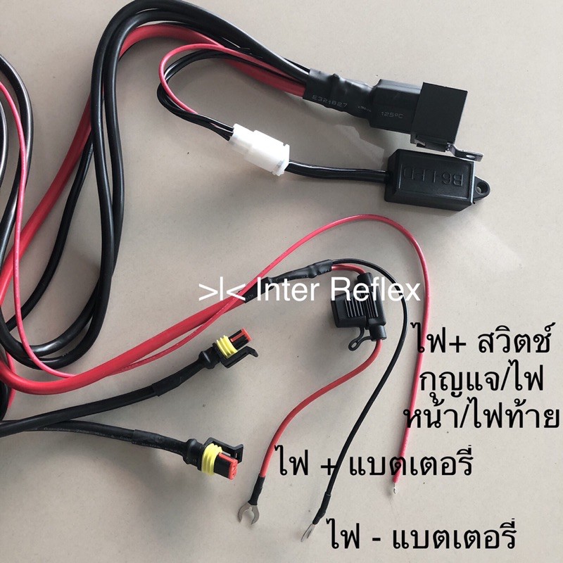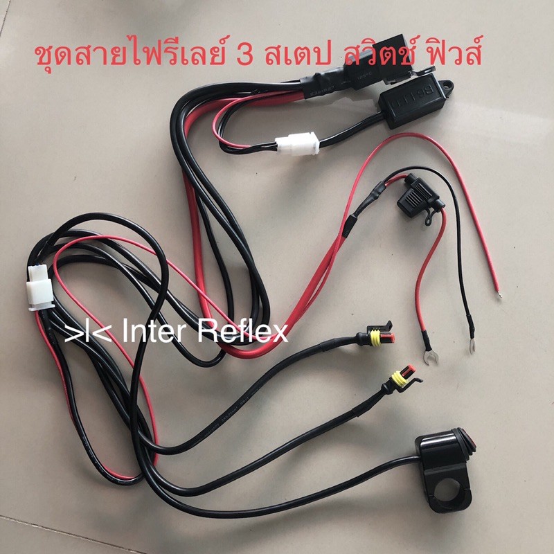 ชุดสายไฟสปอร์ทไลท์มอเตอร์ไซค์ พร้อมรีเลย์กระพริบ 3 สเตป สวิตช์อลูมิเนียม ฟิวส์ จำนวน 1 ชุด
