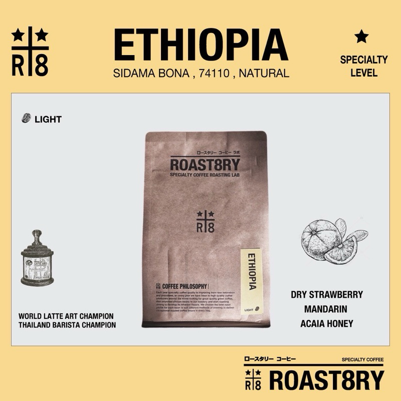 เมล็ดกาแฟคั่วอ่อน Ethiopia โทน Strawberry & Orange สำหรับ Filter coffee