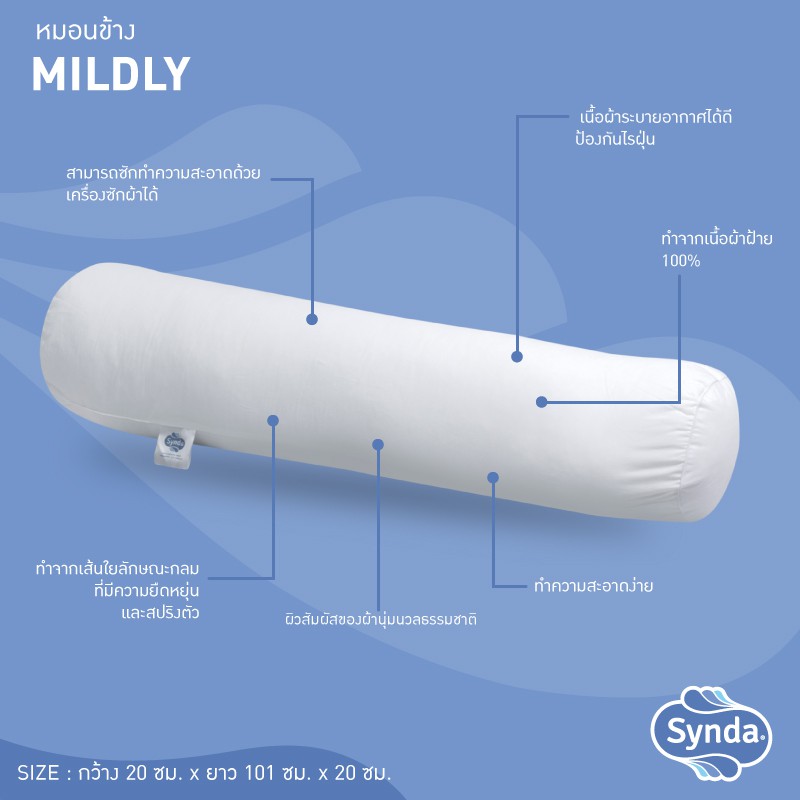 Synda หมอนข้างใยบอล เส้นใยนุ่มกอดสบาย ผ้าหุ้ม cotton 100% รุ่น Mildly