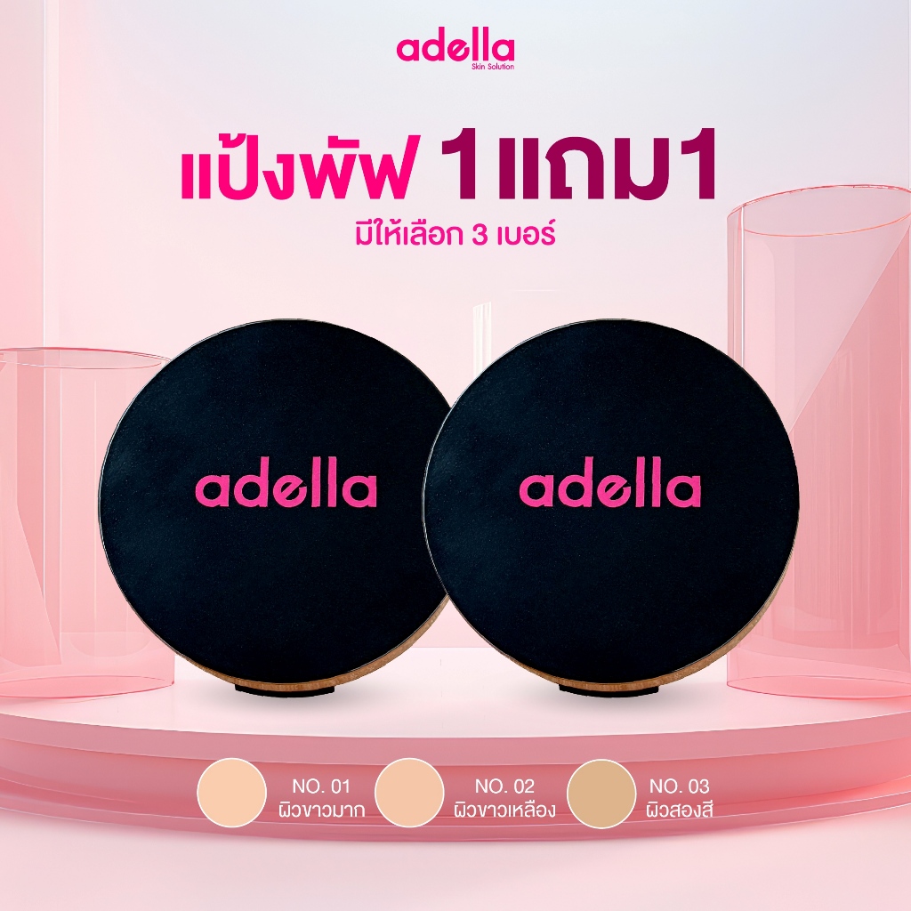 [ADELLA] เซ็ตคู่แป้งพัฟ 1แถม1 - UV Foundation Powder SPF20+++