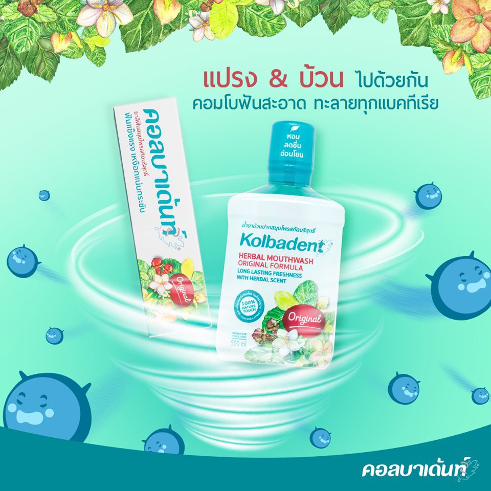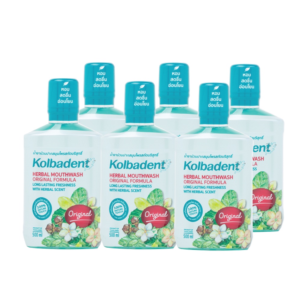 Kolbadent น้ำยาบ้วนปากสมุนไพรสกัดบริสุทธิ์ คอลบาเด้นท์ 500 มล. แพ็ค 6 ขวด
