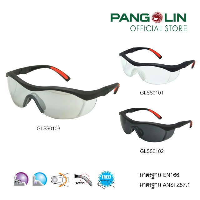 แว่นตานิรภัย แว่นตาเซฟตี้ Pangolin (แพงโกลิน) รุ่นGLSS0101-0103 (J-13S-2) เลนส์ใส เทา ปรอท