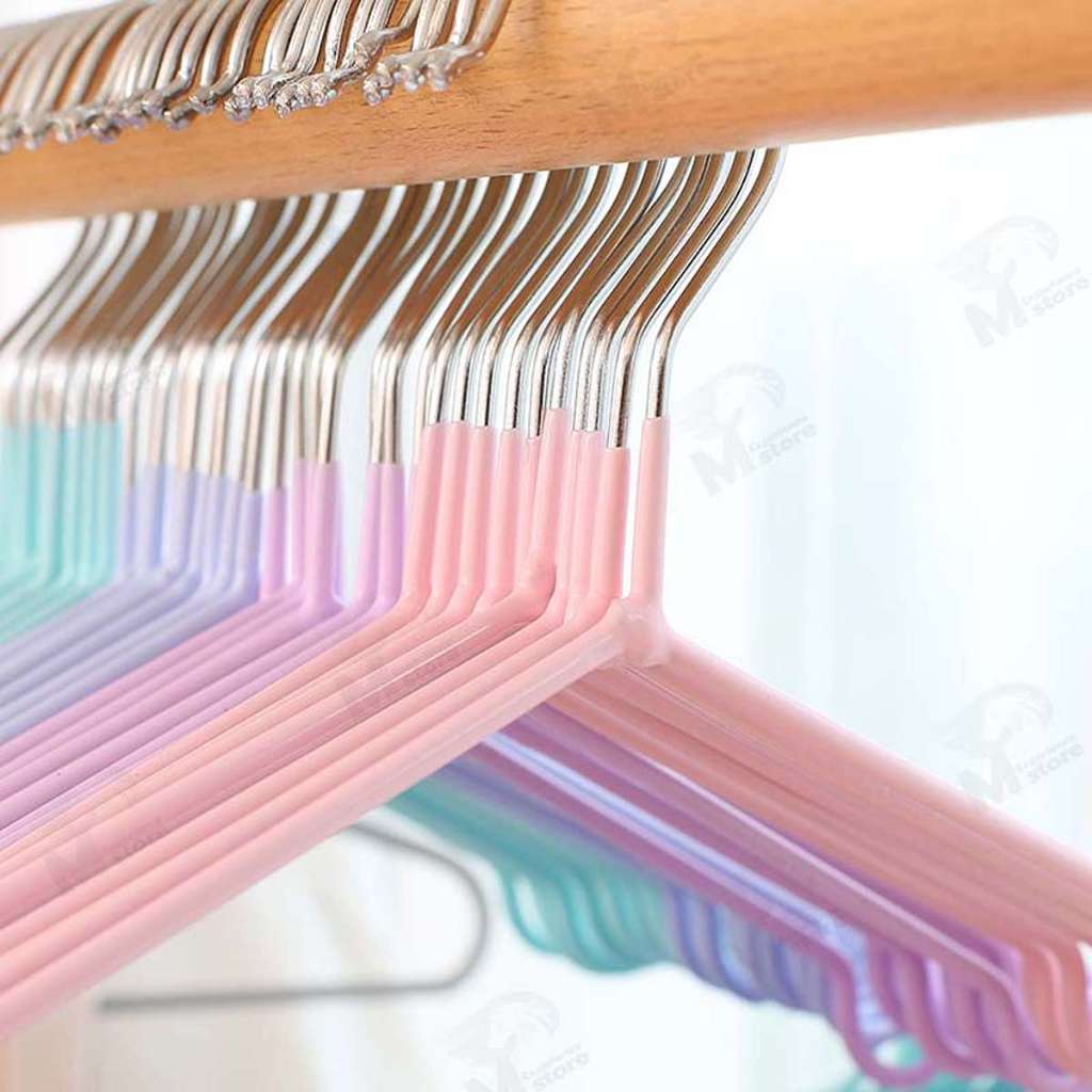 [โปรเด็ด!! ไม้แขวนเสื้อ] ไม้แขวนเสื้อ ไม้แขวนสแตนเลส เคลือบซีลีโคนกันลื่น 2ขนาด ผู้ใหญ่40cm*20cm เด็ก30cm*18cm CC0