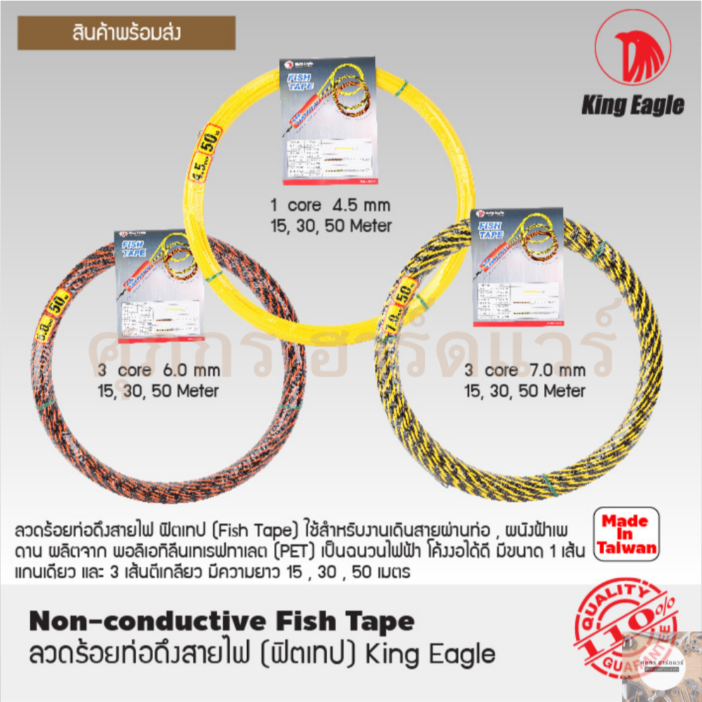 King Eagle ลวดร้อยท่อดึงสายไฟ ฟิตเทป ความหนา 4.5 มม. ความยาว 15 ,30 และ 50 เมตร