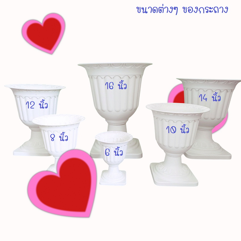 กระถางพลาสติกสไตล์โรมัน (แจกันสไตล์โรมัน) มีฐานรองรับ มีให้เลือกขนาด 6,8,10,12,14 และ 16 นิ้ว (ราคาต่อ 1 ใบ)
