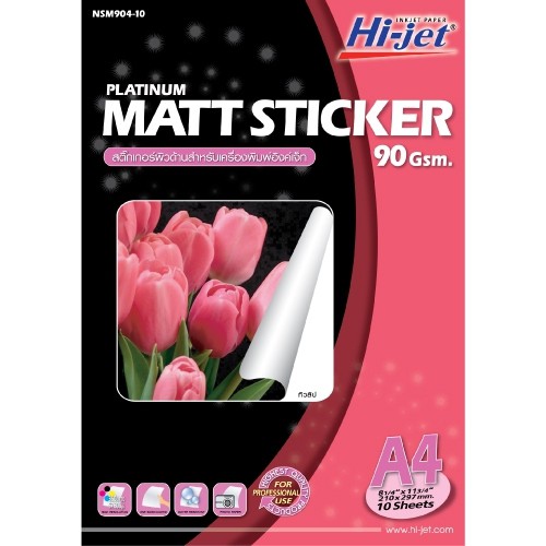 Hi-jet สติกเกอร์ผิวด้าน Inkjet Platinum Matt Sticker 90 แกรม A4 10 แผ่น