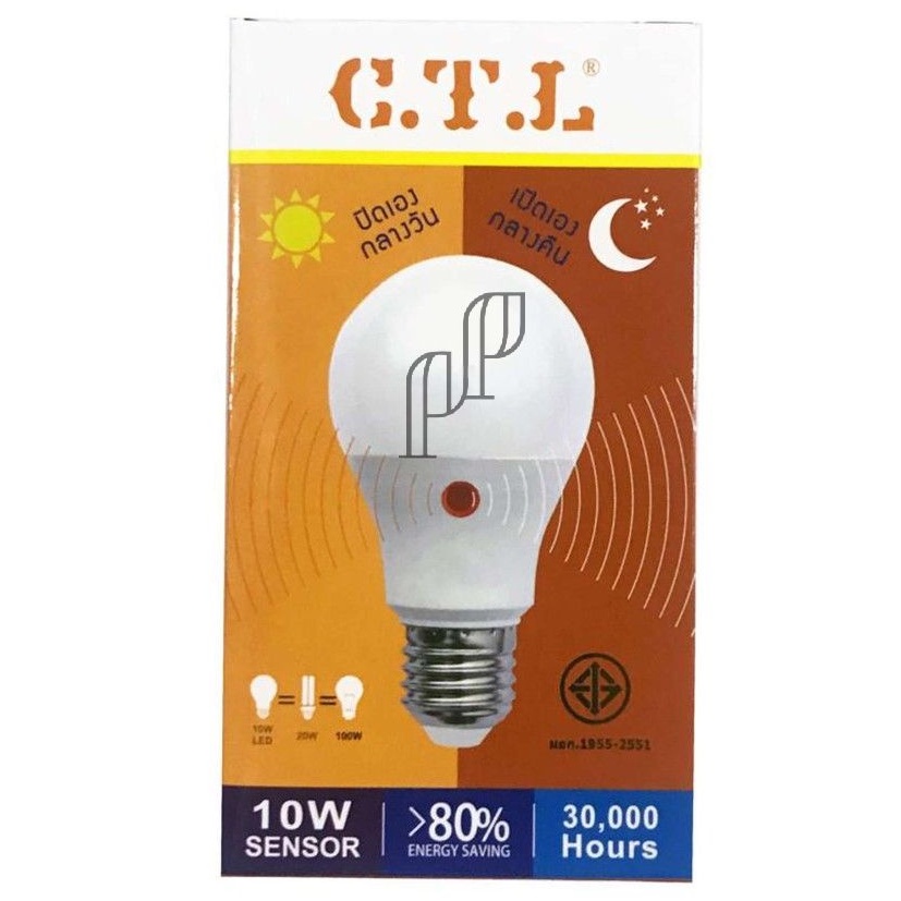 CTL หลอดไฟ LED หลอดไฟเซ็นเซอร์แสงอาทิตย์ เปิดเองกลางคืน ปิดเองกลางวัน Light Sensor 10w แสงขาว แสงวอร์ม