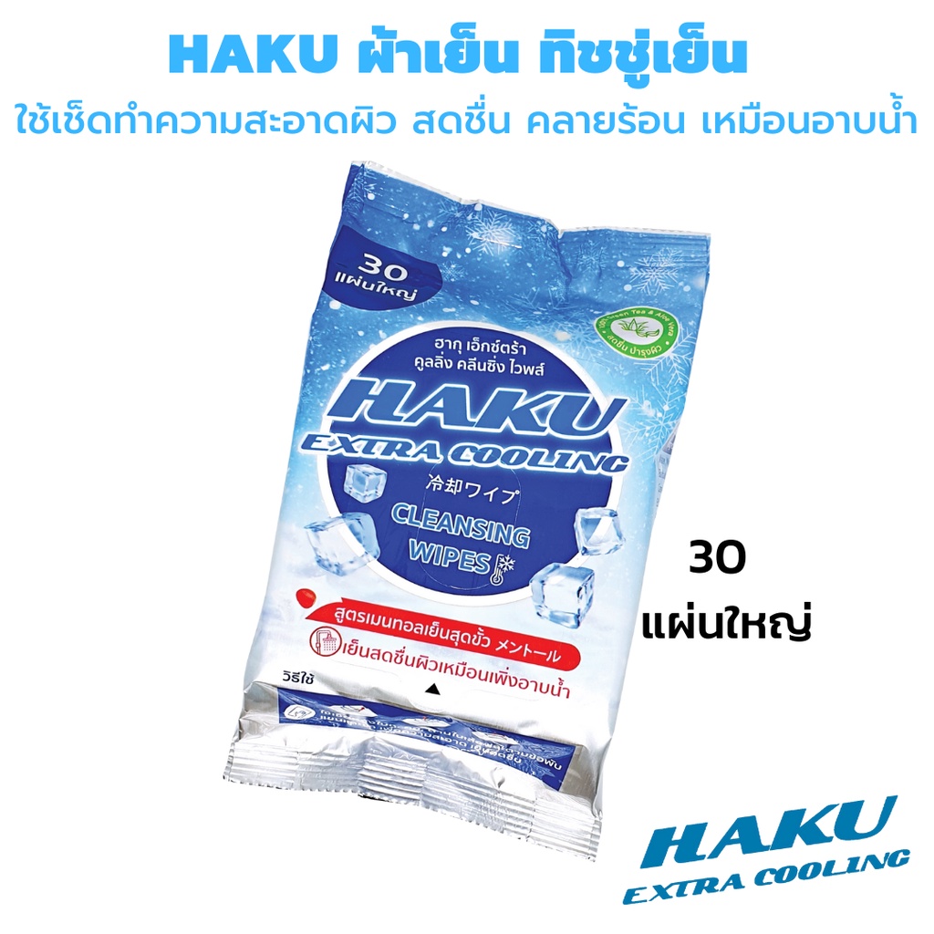 (1ห่อ)ผ้าเปียกติดแอร์ Haku Cooling กลิ่นMENTHOL 30 แผ่นใหญ่ ผสานคุณค่าจากเมนทอล 100% เย็นสุดขั้ว