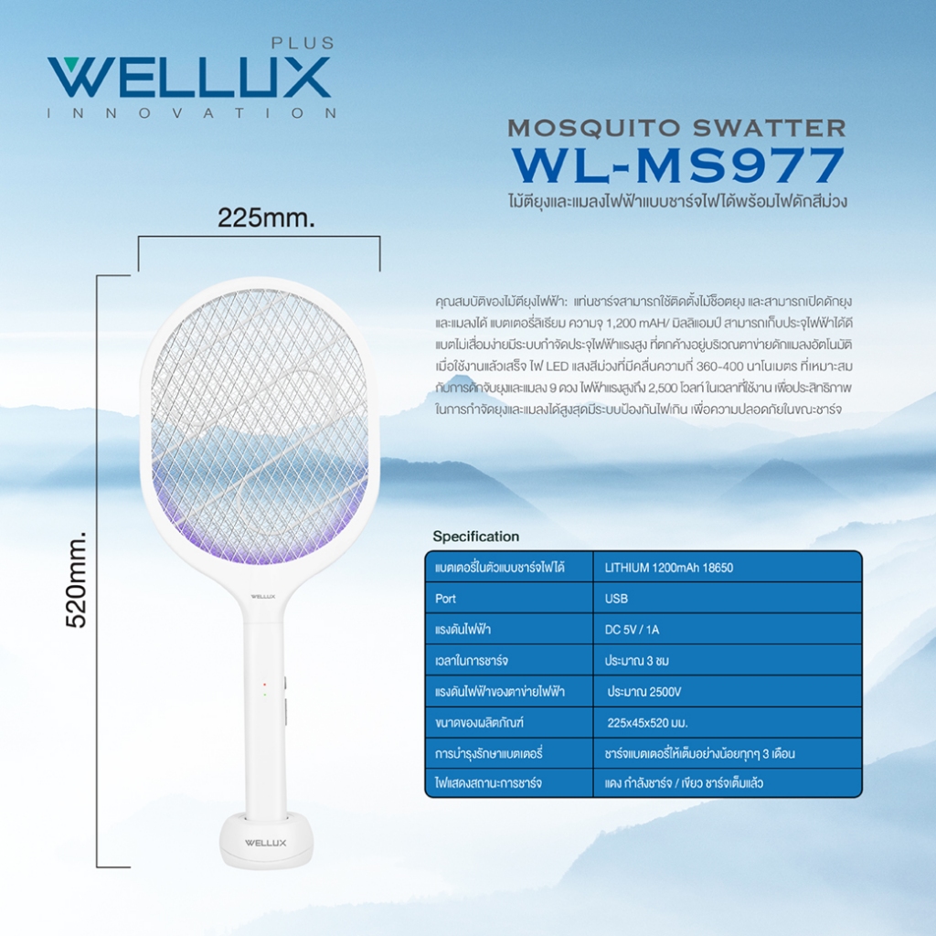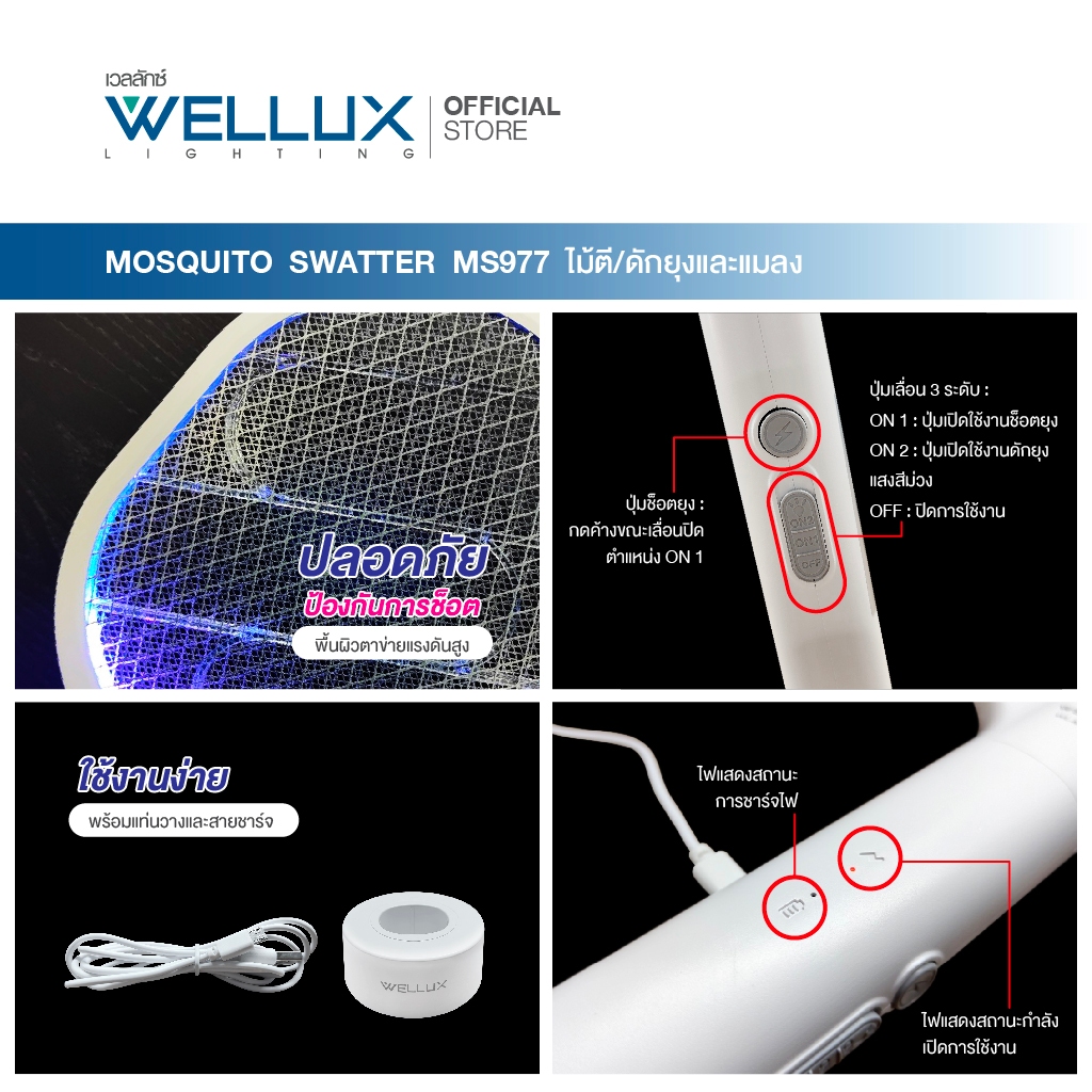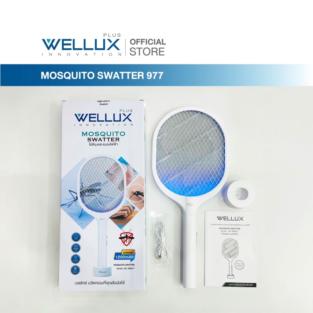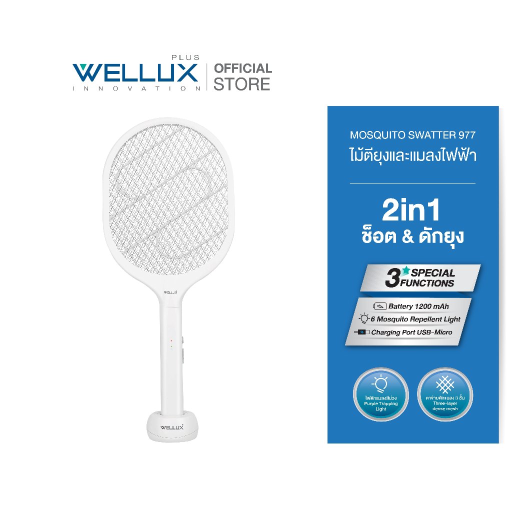 WELLUX ไม้ตียุงมินิมอลพร้อมไฟล่อยุงแสงสีม่วง นวัตกรรมเพียงหนึ่งเดียว Innovative Mosquito Swatter 977