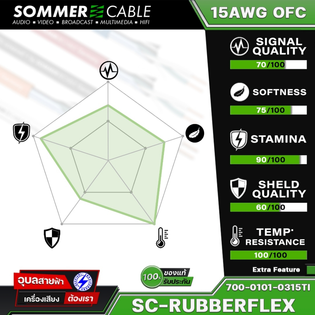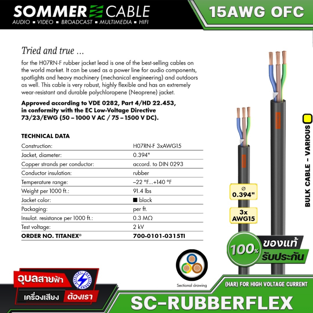 Sommer SC-Rubberflex Titanex สายไฟ เพาเวอร์ 3x1.5 มม สำหรับ เครื่องเสียง High Voltage Power cable