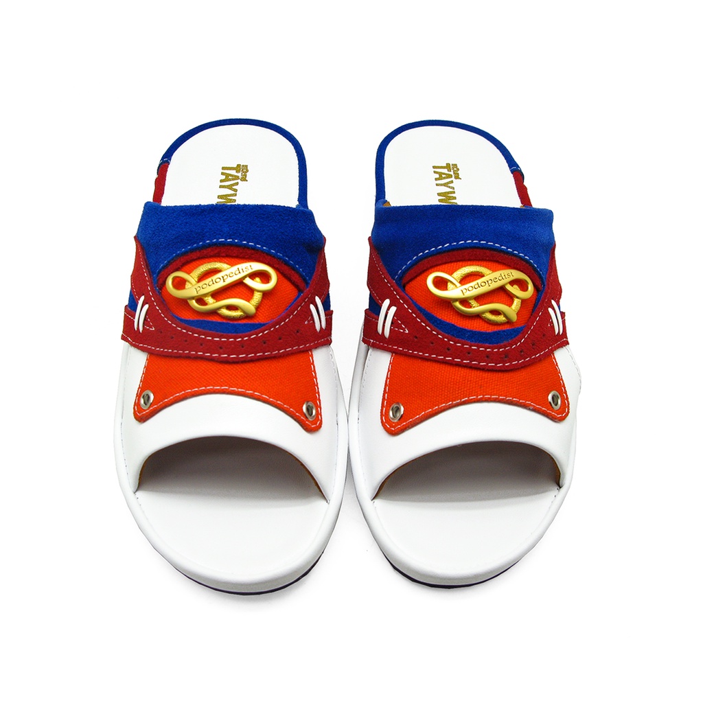 TAYWINแท้ เทวินทร์แท้ รองเท้าแตะ SKF-34 Size39-46 หนังนิ่มขาว-กลับแดง-น้ำเงิน-ผ้าแคนวาสส้ม