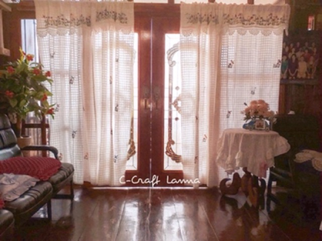 ผ้าม่านประตู ผ้าฝ้ายปักมือลายแมลงปอ กว้าง110สูง200ซม สุดคลาสสิค แสดงถึงกลิ่นอาย ความเป็นล้านนา