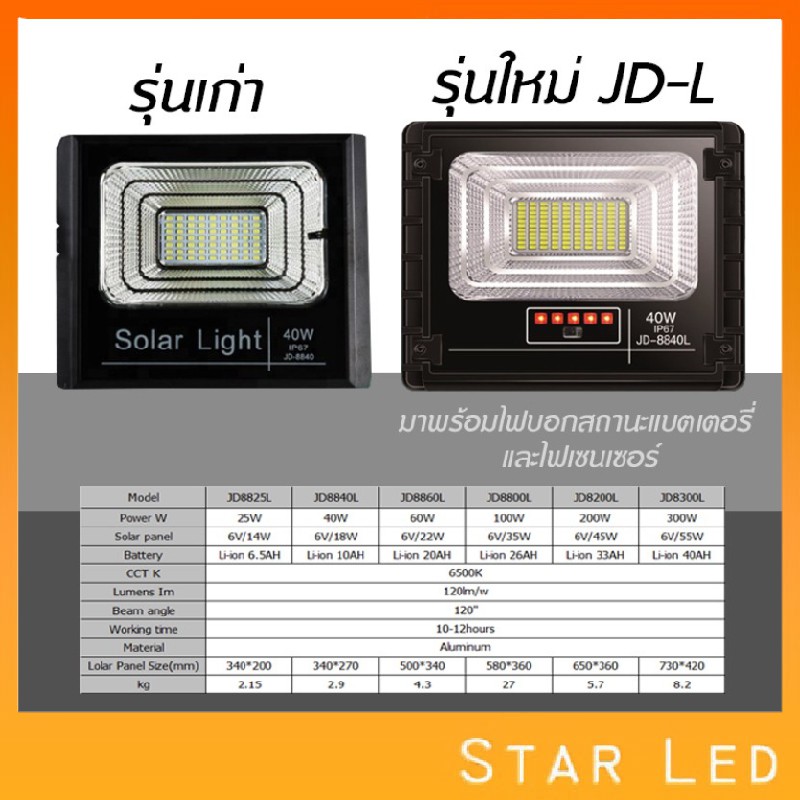 jdjindian ไฟสปอร์ตไลท์โซล่าเซลล์ รุ่น L เเสงขาว JD-8825L-JD-8300L รับประกันสินค้า1ปี