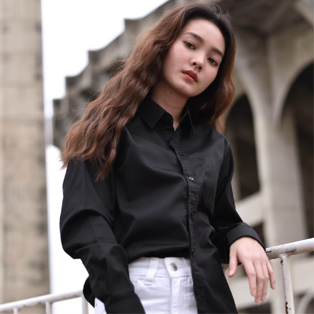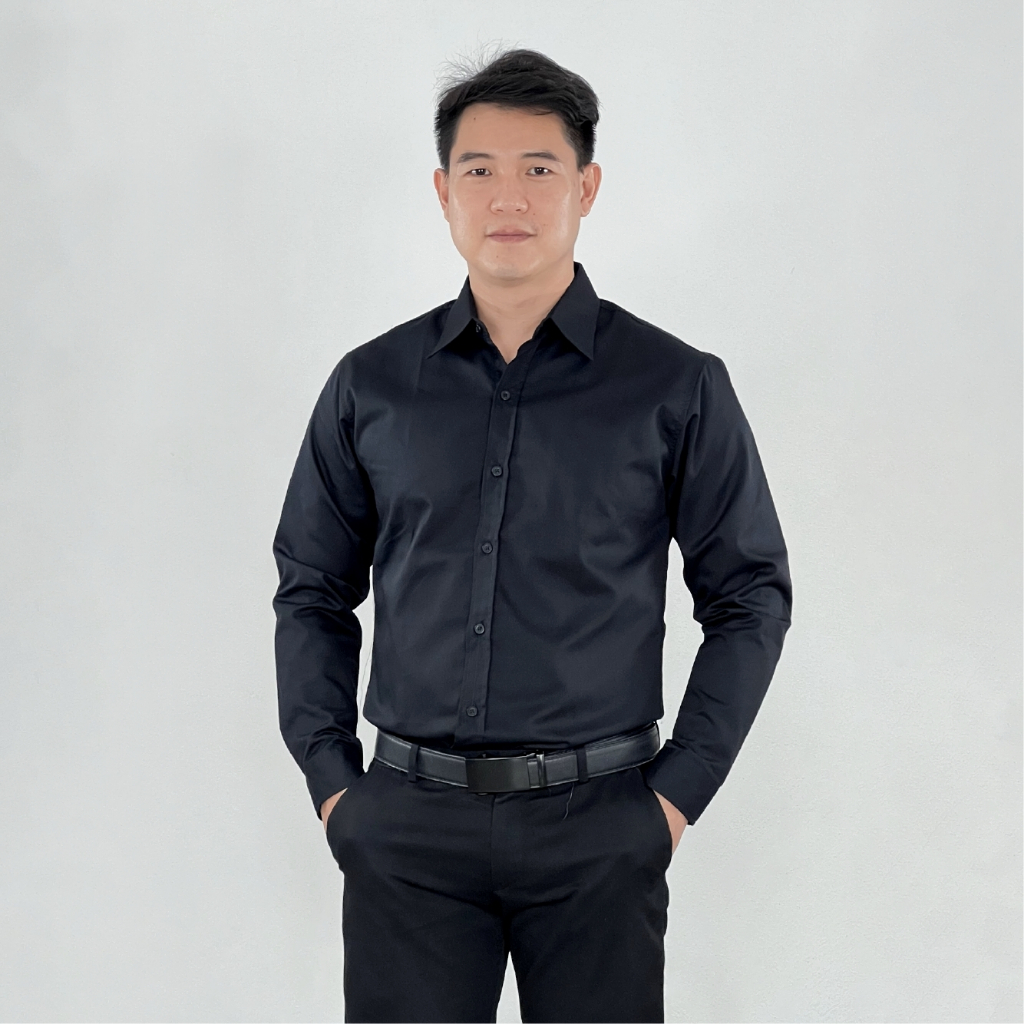 takayay brand เสื้อเชิ้ต สีดำพื้นเบสิค 36-54 นิ้ว ผ้าคอตตอนทวิล เสื้อเชิ้ตสีดำแขนยาว