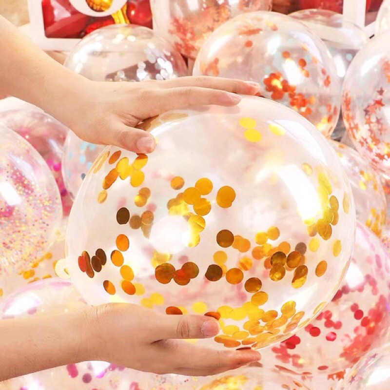 ลูกโป่งกลิตเตอร์ใส ลูกโป่งแฟนซีตกแต่ง 12 นิ้ว ใช้งานตกแต่งงานวันเกิด